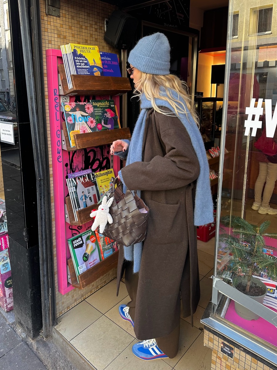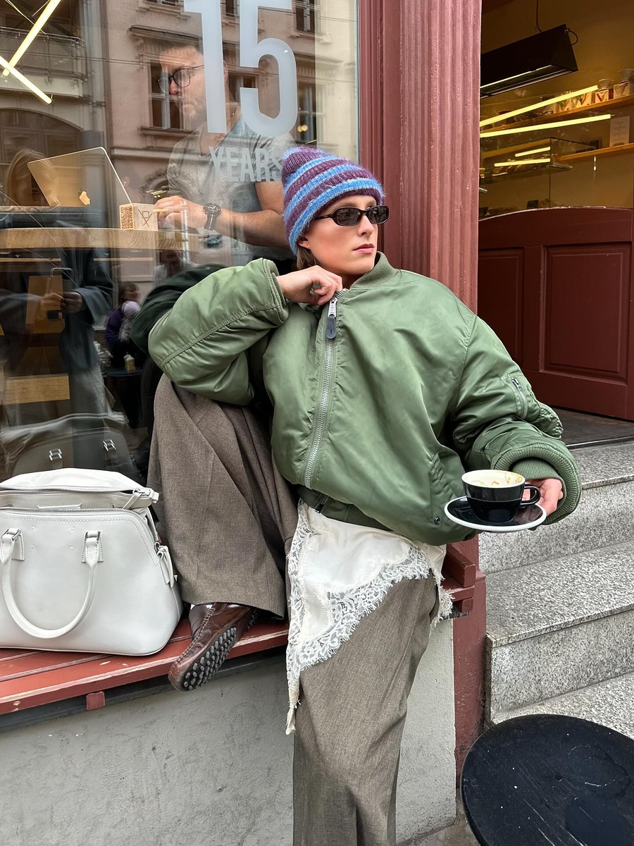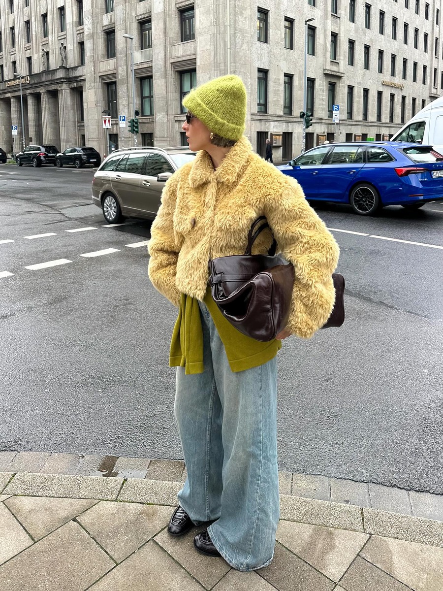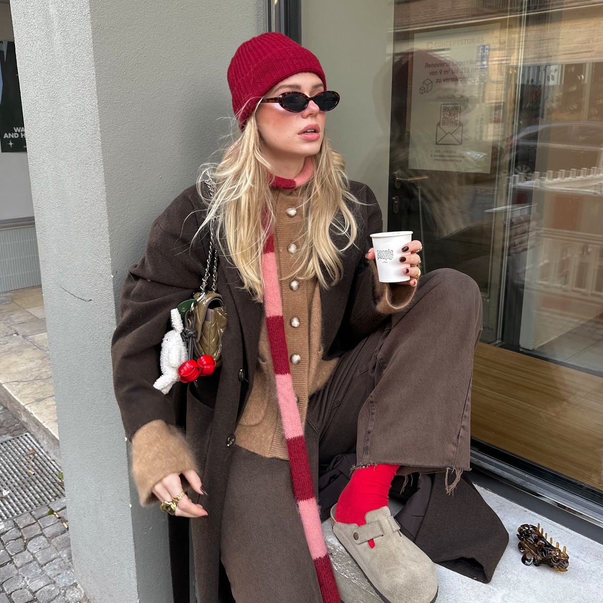 만져보고 싶은 부드러운 소재의 앙고라 비니는 니트 소재보다 포근한 무드를 주는 것은 물론 실제로 더 따뜻한 보온 효과가 있어요. 무채색을 겹겹이 쌓은 룩에 톤온톤 컬러의 비니를 매치하거나, 목도리, 운동화 등 다른 액세서리와 컬러 톤을 맞춰보세요. 여기서 중요한 점은 컬러는 맞추되 소재의 차이를 주는 것! 올리브그린 컬러로 허리에 두른 가디건과 비니의 컬러를 맞춘 센스 있는 룩에서 영감을 얻어보세요.