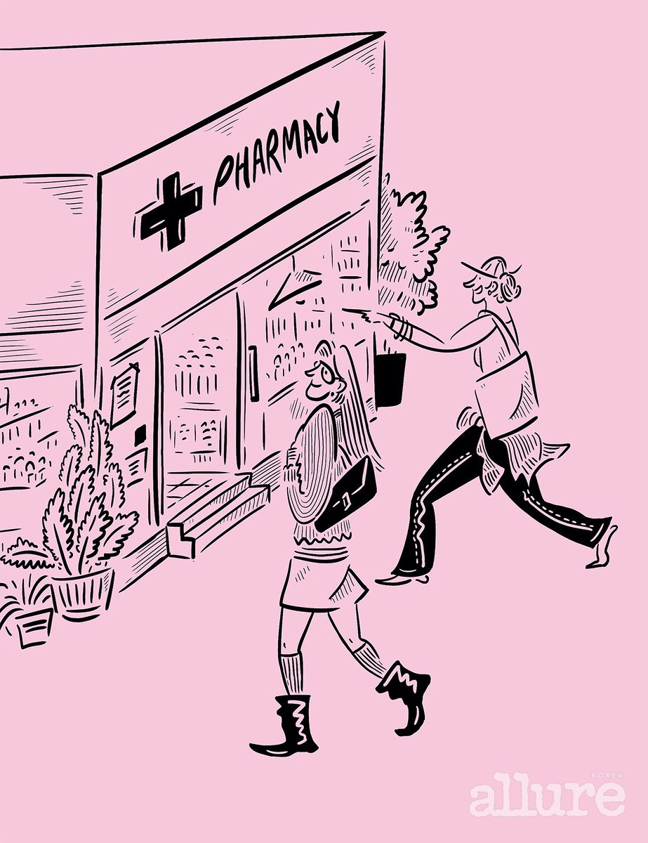 화려한 패키지와 황홀한 향보다 실질적인 피부 개선 효과를 원하는 소비자가 눈을 돌린 곳은 약국이다. ‘바르는 리쥬란’으로 불리며 품절 대란을 일으킨 리쥬비넥스, 좁쌀 여드름과 모공 관리에 특화된 에크린 겔, 피부 재생을 돕고 염증을 줄이는 D-판테놀 등이 대표적이다. 백화점이나 드러그스토어에는 없는, 오직 약국에서만 구매할 수 있는 연고가 뷰티 필수템으로 떠오른 것. “리쥬비넥스를 실제로 사용하고 있어요. 피부과 시술 후나 니들샷 같은 피부 자극적인 홈케어 후에 재생용으로 쓰죠. 화장품만큼 발림성이 좋지는 않아 크림에 섞어 바르기도 해요.” 유튜버 약사슴 TV로 활동 중인 박혜지 약사의 설명이다. 약사까지 사용할 정도로 신뢰받는 K-연고, 약이기에 효과가 이미 입증됐음에도 가격은 고기능성 화장품에 비해 합리적이다. 그래서인지 한국을 방문한 여행객에게 K-약국은 필수 방문 코스가 되었다. 그들이 자주 찾는 지역에는 일본의 돈키호테나 프랑스 몽쥬 약국처럼 드러그스토어를 방불케 하는 대형 약국이 들어섰고, 매대에는 일본어, 중국어, 영어 등 다양한 언어로 연고의 이름과 효능 설명이 빼곡히 적혀 있다.