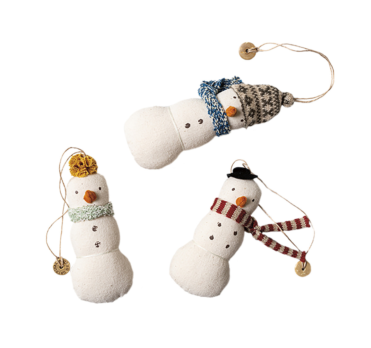 까다로운 테스트를 거쳐 KC 마크를 획득한 오너먼트. 자연 친화적 소재로 만들었으며, 패브릭 안에는 솜을 넣어 가벼운 것이 특징이다. 가는 트리 나뭇가지에도 걸기 좋고, 떨어지더라도 깨질 염려가 없다. 3만2천원 메일레그 바이 마이알레(Maileg by Myallee).
