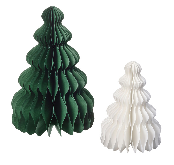 100% 재활용 폴리에스터로 제작한 산타 인형과 100% 재생 종이로 만든 트리로 친환경적인 연말을 보내면 어떨까? 선반이나 테이블 위에 인형을 툭 올려놓고, 납작하게 접힌 트리를 쫙 펼치면 준비 끝! 각각 7천원대, 7천원대(2개 세트) 이케아(Ikea).