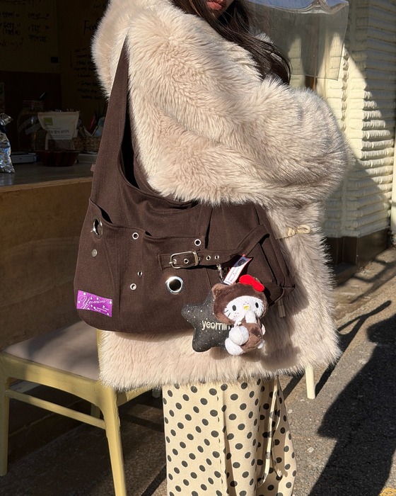 발레 코어 1티어인 수지의 선택은? 현재 수지가 앰버서더로 활동하고 있는 셀린의 로고를 귀엽게 재해석한 트리옴프 하트 폼폼 키 링입니다. 블랙 백에는 핑크 색상을 더해줘 포인트로, 그레이 컬러의 발레 가방에는 이와 유사한 컬러를 선택해 꾸안꾸 느낌으로 연출했어요. 역시 배셀린!