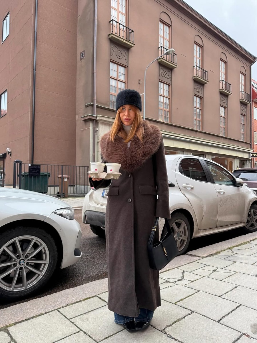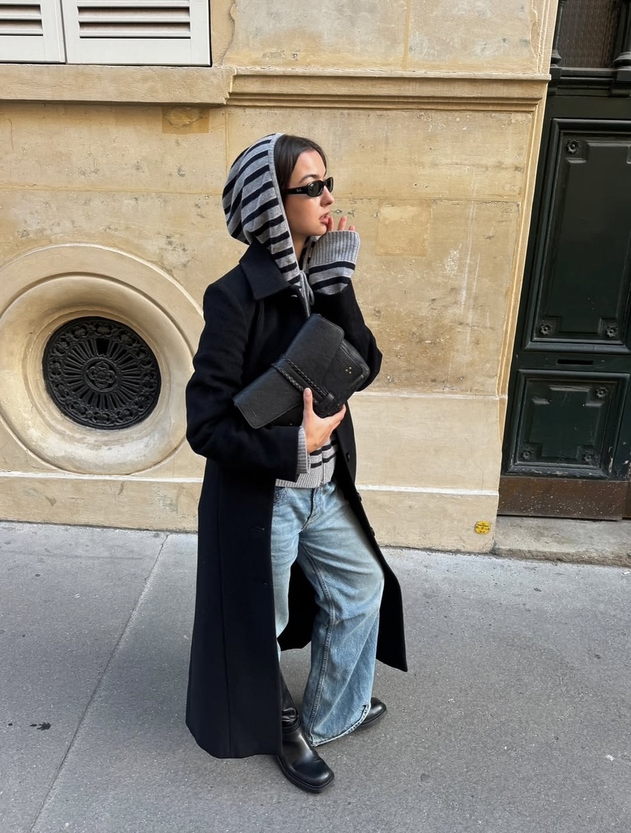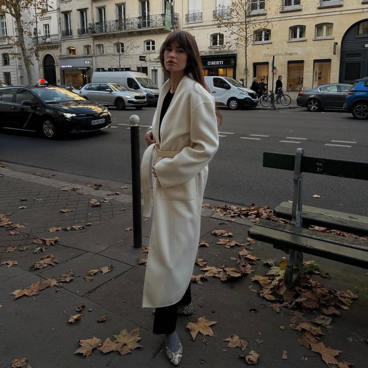 코트 위에 벨트를 묶거나 스트랩으로 허리 라인을 강제적으로 조여 S라인을 만들어주세요.벨트를 묶을 때 코트 앞을 살짝 꺼내 자연스러운 주름을 잡으면 더 날씬해 보여요. 또 어깨는 잘 맞고, 밑으로 갈수록 자연스럽게 퍼지는 핏을 선택하세요. 밑단이 퍼지면서 허리와 골반의 부피 차이가 시각적으로 커져 허리가 더 얇아 보여요.