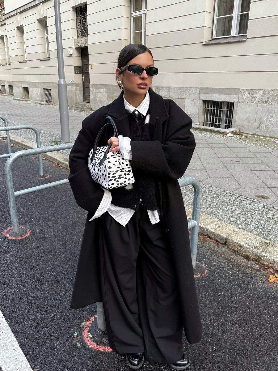 부담스럽지 않으면서 멋을 포기하기 어려울 땐 올블랙을 고려하게 되죠. 특히 오랜만에 만나는 연말 모임에선 스타일리시해 보이면서도 너무 과하게 드레스업한 것 같지 않아 보이기 위해 고심하게 되는데요. 이때 적용할 수 있는 팁이 바로 올블랙입니다. 이왕이면 상하의 소재를 맞추는 것이 좋아요. 가죽이면 가죽, 울이라면 울 소재를 통일해 입는 거죠. 함께 매치하는 액세서리도 마찬가지입니다.