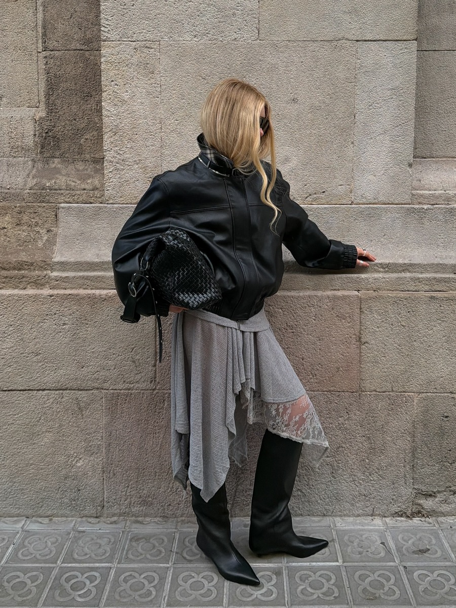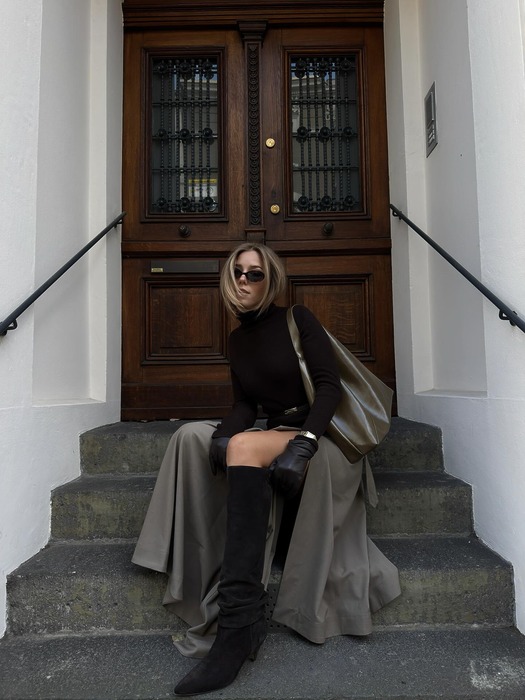 롱 스커트와 롱 부츠가 어울리지 않는다고 생각했다면 오산. 다리를 덮는 롱 스커트 안에 롱부츠를 신어주면 오히려 세련돼 보인다는 사실, 알고 계셨나요? 우아한 스커트 끝자락부터 부츠로 이어지는 묵직한 실루엣에서 의외의 매력이 느껴집니다. 슬릿 디테일이 들어간 스커트를 선택하면 걸을 때마다 살짝 드러나는 부츠덕가 전체적인 스타일링에 드라마틱함을 더하죠. 스커트 안에 스타킹을 레이어드하면 아무리 추운 겨울바람도 걱정 없으니, 한 번 쯤 시도해 보세요.