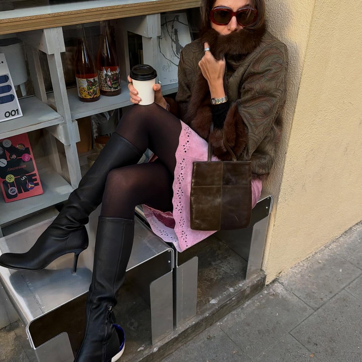 조금 더 강렬한 무드를 원한다면 마이크로 미니 스커트와 싸이하이 부츠 조합이 제격이죠. 무릎 위까지 올라오는 부츠는 그 자체만으로 확실한 존재감을 뽐내 별다른 스타일링 없이도 룩이 완성됩니다. 어두운색의 싸이하이 부츠와 스커트로 중심을 잡아주고 상의는 가벼운 컬러로 균형을 맞춰 보세요. 활동성과 보온성, 스타일까지 모두 잡을 수 있어 겨울 파티룩으로도 손색없을 거예요.