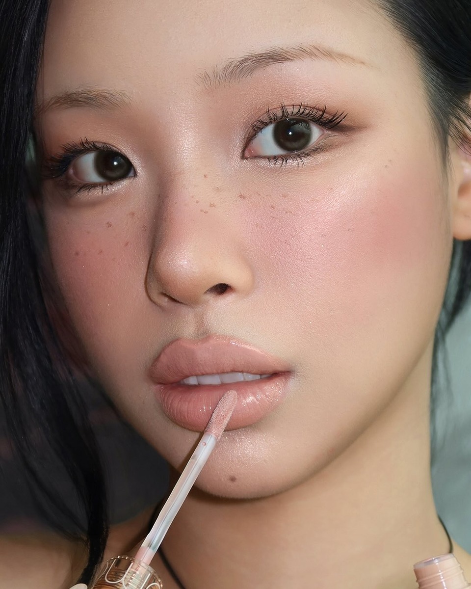 갸루 메이크업의 또 다른 특징 중 하나는 바로 누디하면서 글로시한 립입니다. 과거에는 마치 크레파스를 바른 것처럼 아주 매트하고 색깔도 리얼 화이트나 아주 페일한 누드빛 립 제품을 바르기도 했지만 최근에는 그때의 극단적인 메이크업보다 일상적인 요소가 많이 더해진 편이에요. 은은하게 혈색이 도는 컬러를 더해주기도 하죠.