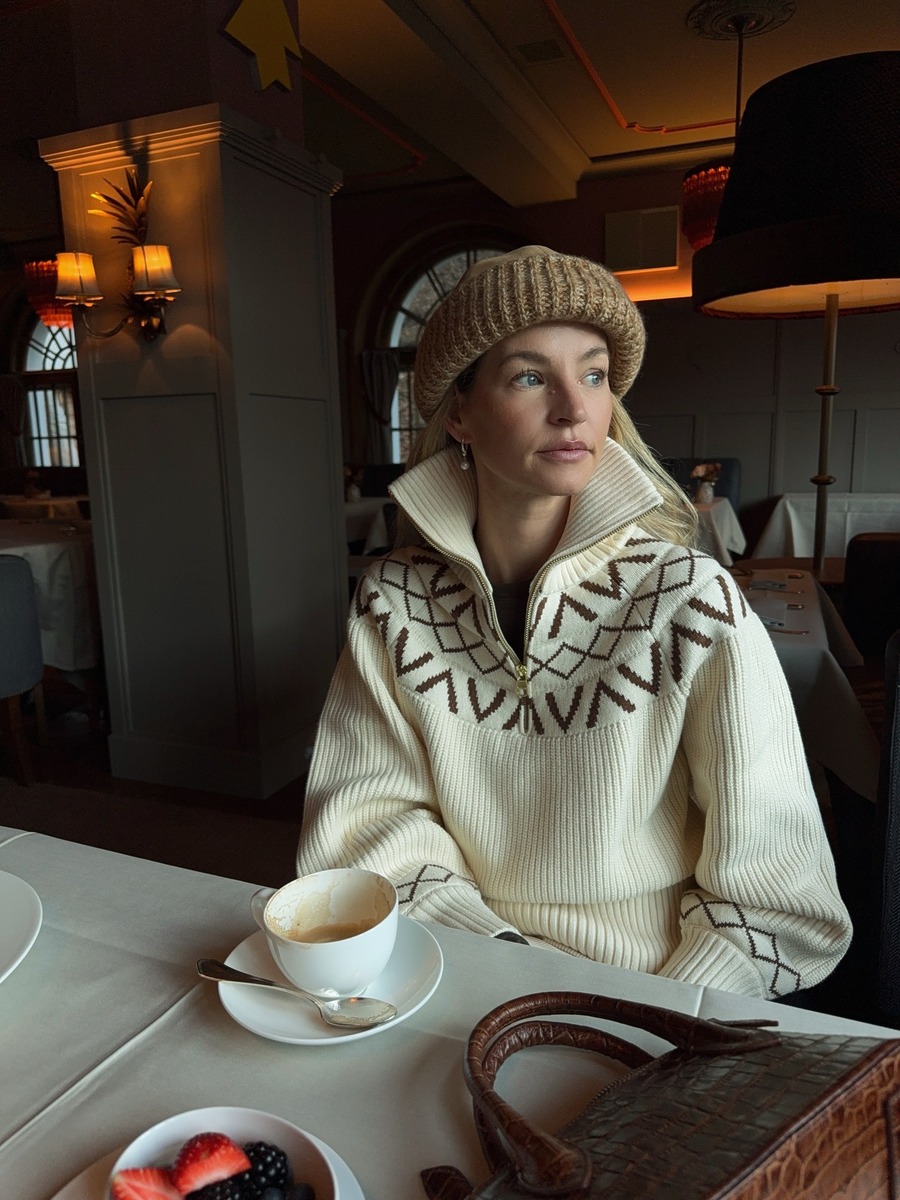 겨울 무드를 살리고 싶다면 노르딕 패턴이 들어간 쿼터 집업도 좋은 선택입니다. 카라가 높은 디자인을 고르면 우아한 분위기가 더해지고, 같은 컬러의 팬츠를 매치하면 룩에 통일감이 생깁니다. 편안함과 고급스러움, 두 마리 토끼를 모두 잡고 싶을 때 쿼터 집업 만한 아이템이 없죠.