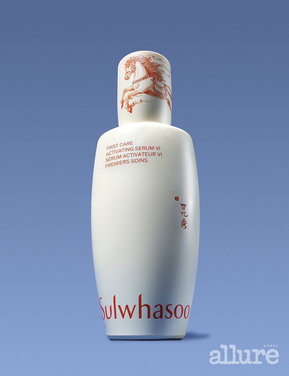 설화수의 윤조에센스 말의 해 리미티드 에디션 퍼스트 에센스에 천마도에서 영감 받은 붉은 말을 새겼다. 120ml 17만원.