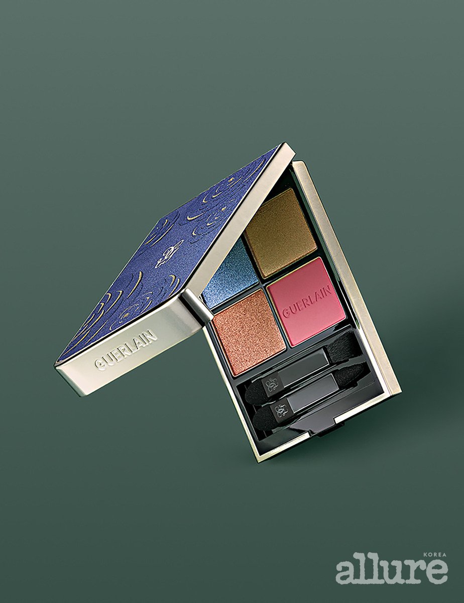 겔랑의 블루밍 데님 옹브르 G 장미 양각을 새긴 블루 패키지는 폐기되는 데님 소재를 재활용한 것. 6g 12만9천원.
