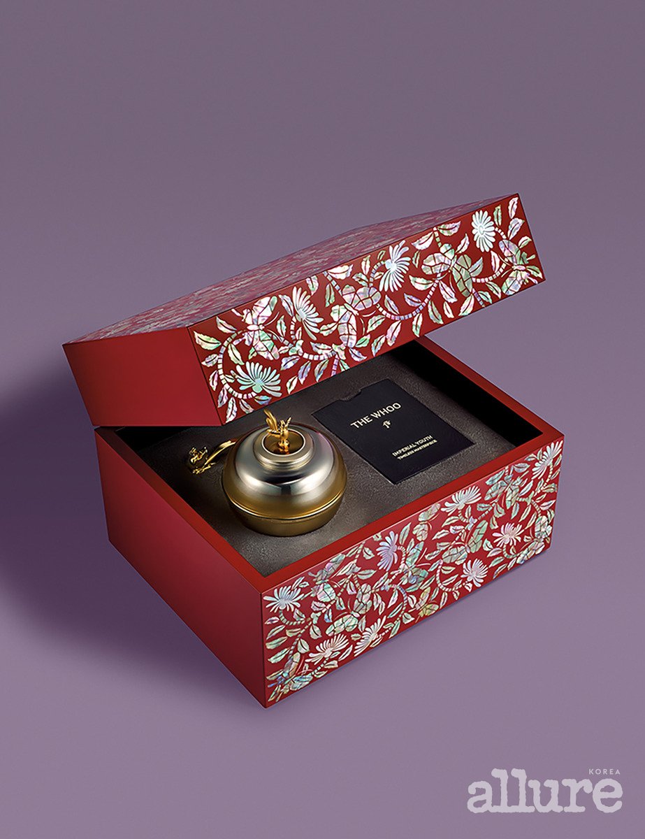 더후의 환유 국빈세트 APEC 한정 에디션 무형문화재 1호 옻칠장인 손대현이 제작한 나전칠기함에 크림을 담았다. 5백만원.