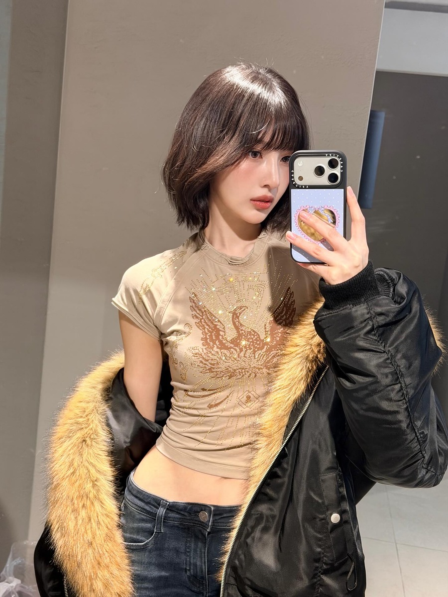 올해 봄버의 특징 중 하나는 바로 퍼가 트리밍된 것 입니다. 예지와 조이 모두 퍼가 풍성하게 더해진 봄버를 택했는데요, Y2K 시절과 차이점이 있다면 그때보다 핏은 좀 더 루즈하고 박시하다는 것 입니다. 이 아우터는 하의에 따라 느낌이 확확 달라지는데요, 예지처럼 와이드 핏 데님과 함께 입어 꾸안꾸 무드를 연출하거나 조이처럼 슬림핏 부츠컷을 더해주면 섹시하고 여성스러운 느낌을 강조할 수 도 있어요.