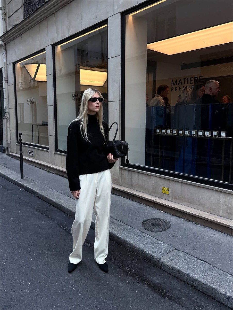 조용한 럭셔리는 몸매를 과하게 드러내지 않아요. 대신 ‘여유로운 핏’이 주는 심리적 안정감과 편안함이 포인트에요. 또 어깨선이 정확한 위치에 있는지, 바지의 주름이 수직으로 곧게 떨어지는지 같은 정교한 테일러링이 고급스러운 무드를 만들어요.