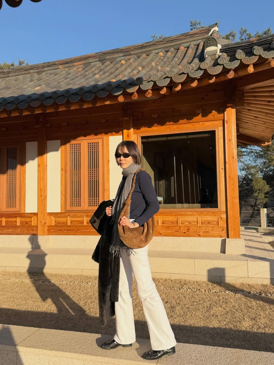 머리부터 발끝까지 아이보리, 베이지, 토프 같은 비슷한 색으로 맞추면 시각적으로 편안하면서도 키가 커 보이는 효과가 있어요. 그리고 가방이나 벨트의 금속 장식이 화려한 금색보다는 은은한 무광 실버나 가죽 소재로 덮인 디자인을 선택하세요. 마지막으로 하나 더! 보풀 하나 없는 니트, 칼같이 다려진 셔츠도 스타일 레벨을 끌어올려줘요.