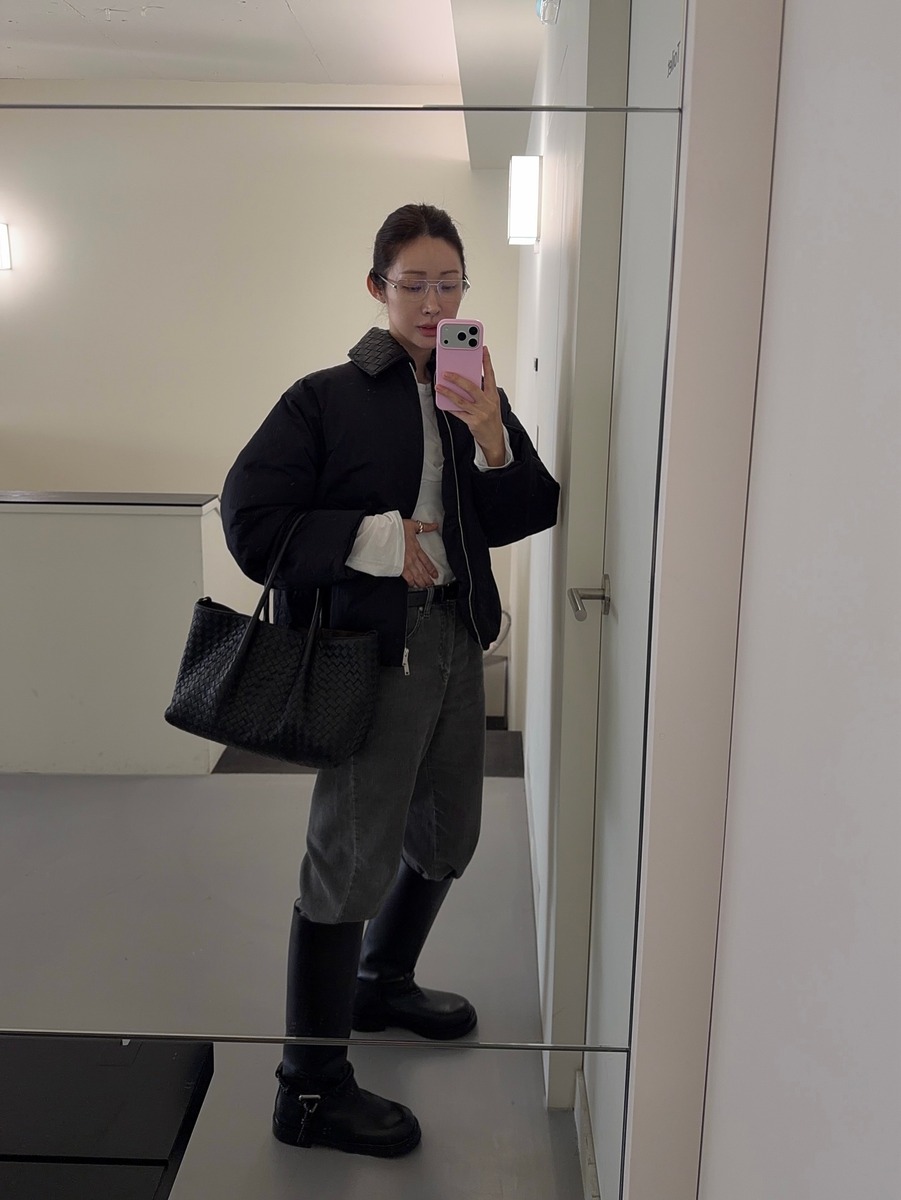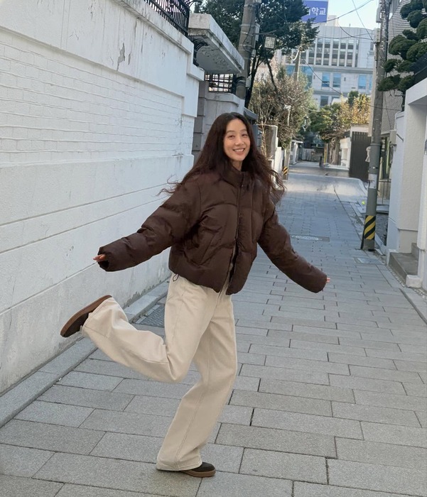 조금 더 실용적인 스타일링을 원한다면 하이웨이스트 팬츠를 선택하는 것도 좋죠. 김나영과 정려원처럼 허리선이 높은 팬츠를 선택하면 숏패딩 특유의 짧은 기장이 오히려 장점이 됩니다. 특히 브라운 컬러 숏패딩은 블랙을 대신할 만큼 활용도가 높아요. 여기에 그린이나 크림 컬러 팬츠를 더하면 겨울 룩이 훨씬 부드럽고 신선해 보일 거예요.