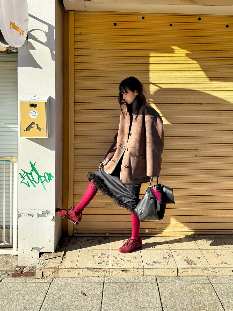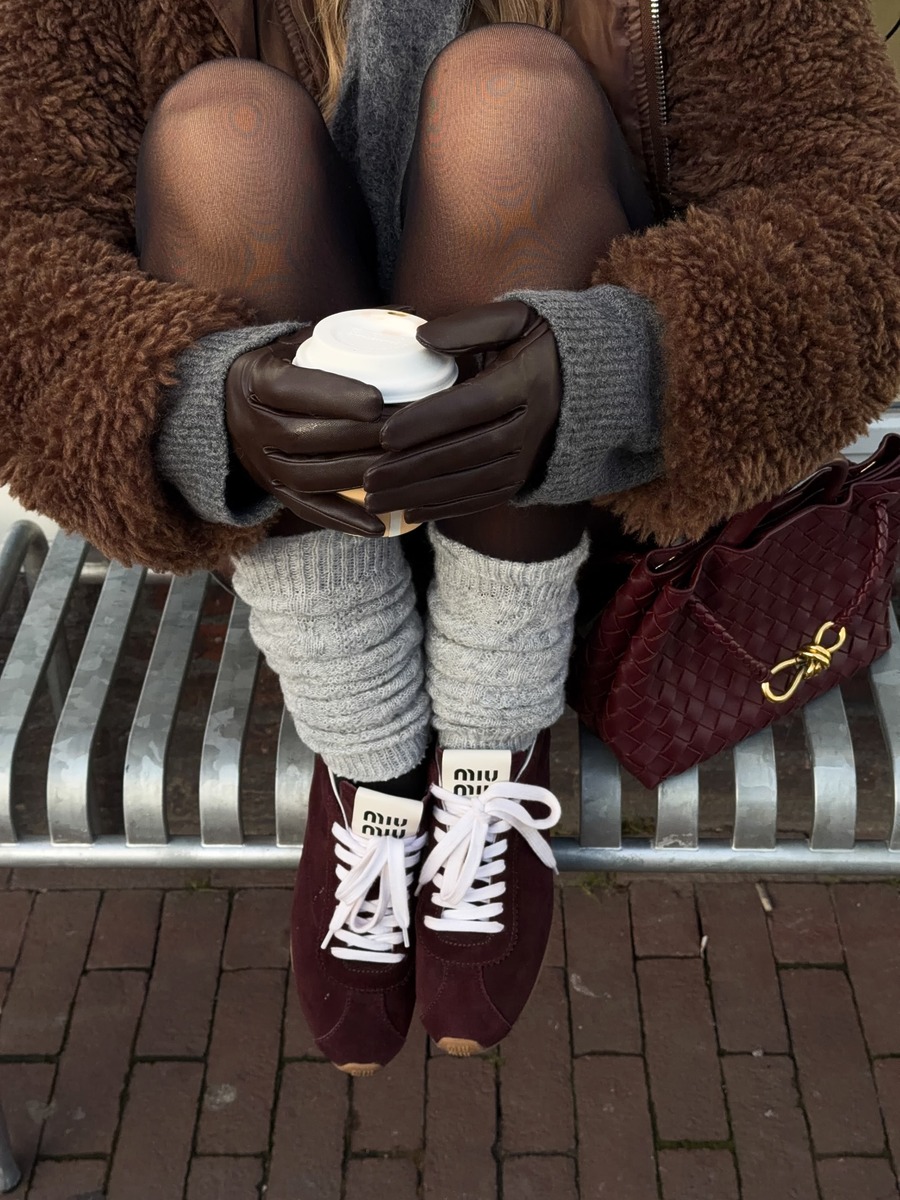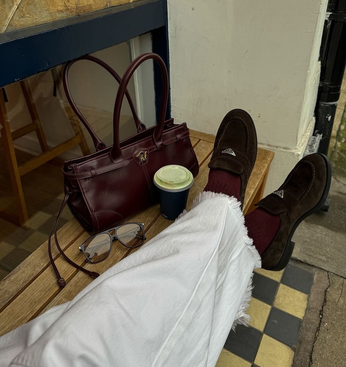 이번 시즌 특히 주목받는 초코 브라운과 버건디 컬러가 만나면? 마치 체리와 초콜릿이 더해진 블랙 포레스트 케이크처럼 부드럽고 완벽한 스타일링이 완성됩니다! 인플루언서 뉴뉴와 클로이는 브라운 컬러의 오버핏 아우터에 버건디 슈즈를 매치했어요. 뉴뉴는 스타킹에 가방의 퍼 장식까지 버건디로 통일해 한층 여성스러운 무드를, 클로이는 보글보글한 퍼 아우터와 그레이 니트 워머를 함께 매치해 발랄한 느낌을 보여줬죠.