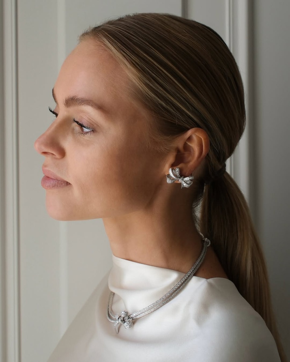 파티 현장에서는 주로 상반신 위주의 ‘셀카’나 ‘클로즈업 샷’을 즐겨 찍는데 이때 리본 디자인이나 하트 디자인은 얼굴 라인을 훨씬 부드럽게 만들어 주고 이목구비를 더욱 또렷하게 강조하는 프레임 역할을 해줘요. 또 우아하고 사랑스러운 분위기도 더해주죠.