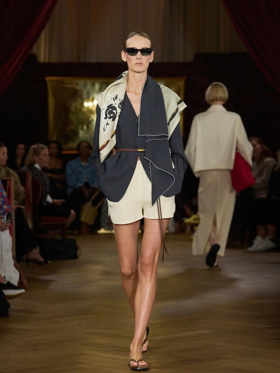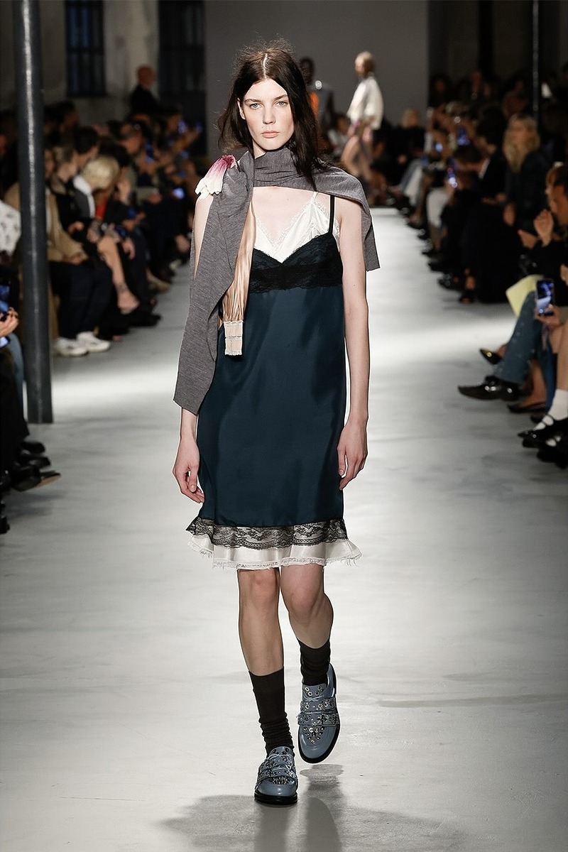 칼마이어 역시 재킷에 넓은 스카프를 활용해 스타일링에 층을 더해줬습니다. 좀 더 재미있는 스타일링에 도전해 보고 싶다면 N.21의 슬립 드레스 겹쳐 입는 방법도 입습니다.