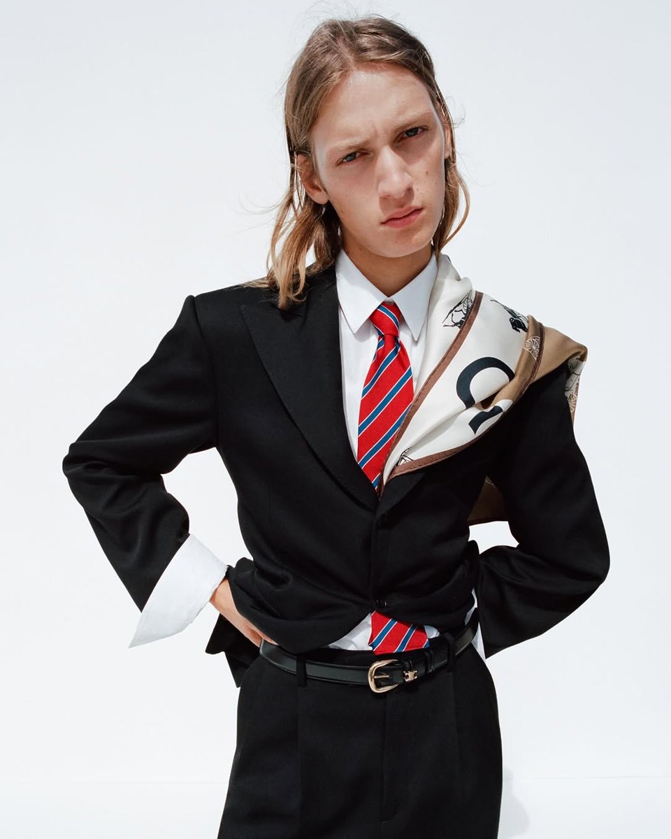 추운 겨울은 비교적 레이어드를 하기 쉽지만 날이 점점 따뜻해지면 여러 겹을 껴입는 것이 쉽지 않죠. 그럴 때는 스카프, 넥타이 같은 액세서리를 활용해 보세요. 셀린처럼 블랙 재킷과 화이트 셔츠라는 정석 조합에 레드와 블루 스트라이프의 넥타이로 포인트를 준 뒤 넓은 스카프를 한 쪽 어깨 위에 얹어 드레시함을 연출해 보는 건 어떨까요?