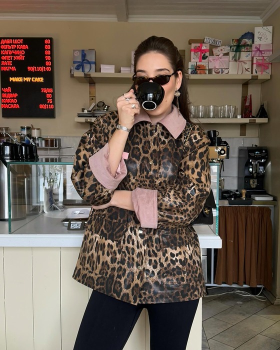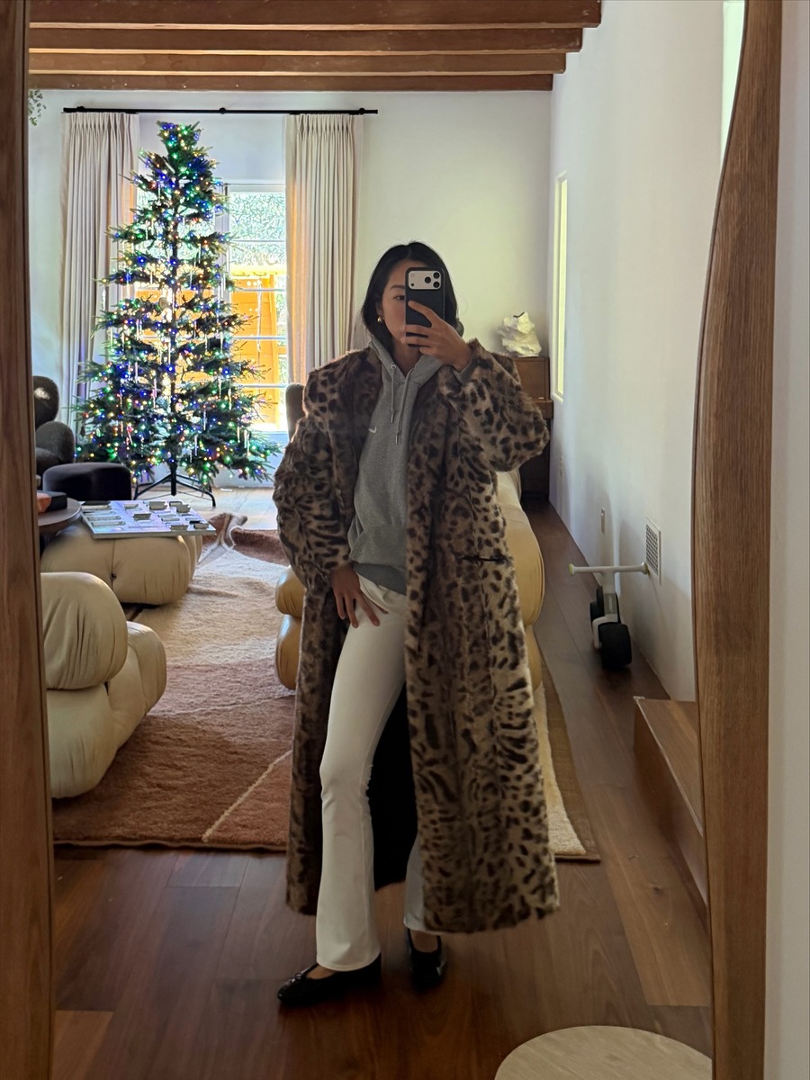 헤일리의 패션에서 알 수 있듯, 캐주얼한 아이템에 애니멀 패턴을 얹으면 레오퍼드도 촌스러워 보이지 않습니다. 루즈한 데님 팬츠에 블랙 스웨터를 매치하고 레오퍼드 퍼 코트를 입거나, 레오퍼드 코트 안에 후디를 레이어드해 힘을 빼 보세요. 부담스럽게 느껴졌던 레오퍼드 코트도 얼마든지 데일리로 활용할 수 있을 거예요.