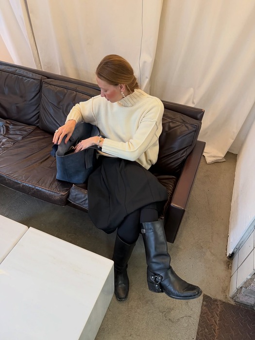 오버사이즈 터틀넥 니트는 포멀함과 캐주얼함을 자유자재로 오갑니다. 여유 있는 넥 라인이 얼굴선을 부드럽게 감싸고, 체형 보완 효과도 확실하죠. 게다가, 밝은 아이보리 컬러 터틀넥은 안색을 환하게 밝혀 주는 효과까지 있으니 겨울 필수템이라해도 과언이 아닙니다. 우아한 롱 코트 부터 걸리시한 플리츠 스커트까지 어떤 아이템과도 이질감 없이 어울려 다양한 스타일링에 활용할 수 있어요.