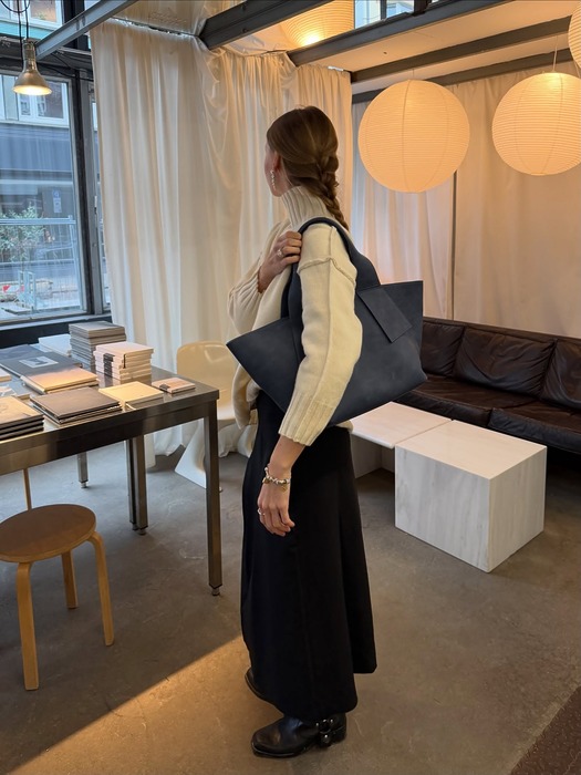 기본 중의 기본인 블렉 터틀넥을 촌스럽지 않게 소화하기 위해서는 함께 매치하는 아이템이 중요합니다. 지수는 블랙 터틀넥 톱 위에 모헤어 카디건을 더해 편안하면서도 사랑스러운 룩을 완성했습니다. 카디건의 헤어리한 질감이 터틀넥의 미니멀함에 텍스처를 더해 지루해 보이지 않죠. 중요한 포인트는 터틀넥의 핏! 터틀넥은 몸에 밀착되게, 카디건은 살짝 여유 있게 선택해야 전체적인 실루엣이 부해 보이지 않습니다.