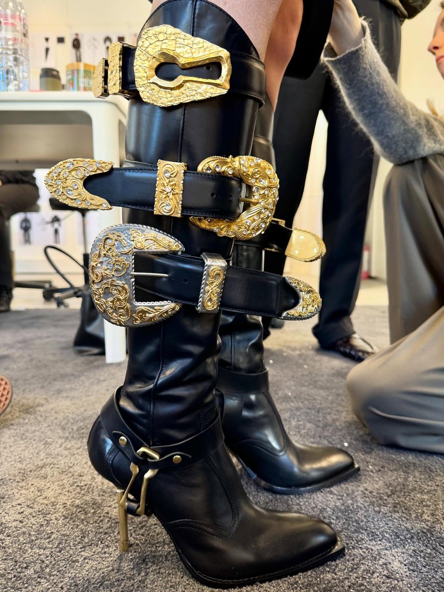 슈즈 역시 소란스러워졌습니다. 생 로랑은 핑크빛 스트랩에 리얼한 체리 장식을 더하고 페라가모는 T 스트랩 슈즈의 발목 부분에 체인을 둘렀죠. 스키아파렐리는 챔피언 벨트를 떠올리게 하는 강렬한 벨트 버클을 롱 부츠 전면에 휘감기도 했습니다.