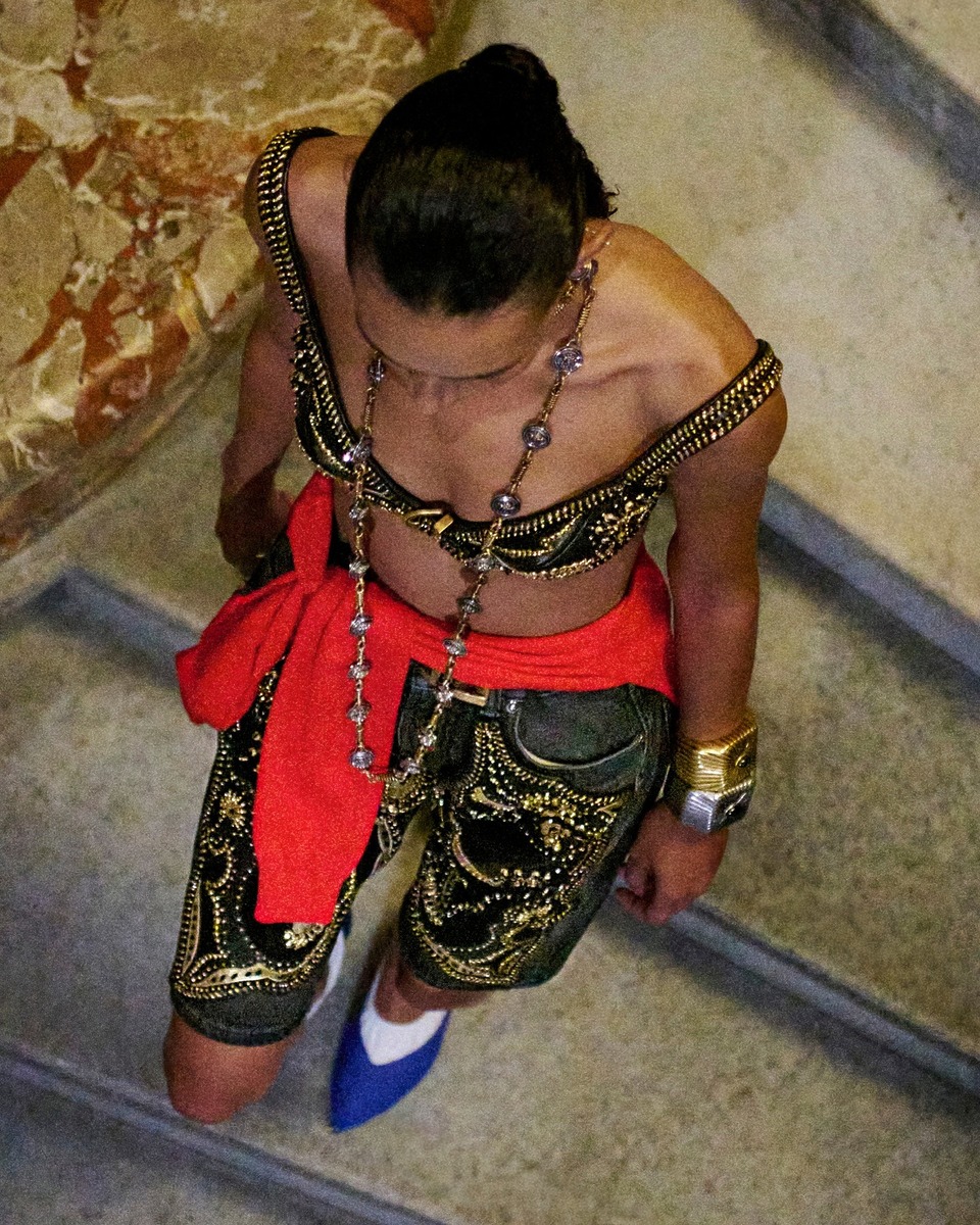 두아 리파는 마치 동물의 발톱을 연상케하는, 끝이 날카롭게 빠지는 빅 이어링과 역시 골드 컬러로 레오퍼드 프린트를 표현한 시스루 드레스로 그녀 특유의 에너제틱함을 표현했습니다. 시어한 소재 사이로 비치는 시계가 은근한 포인트!