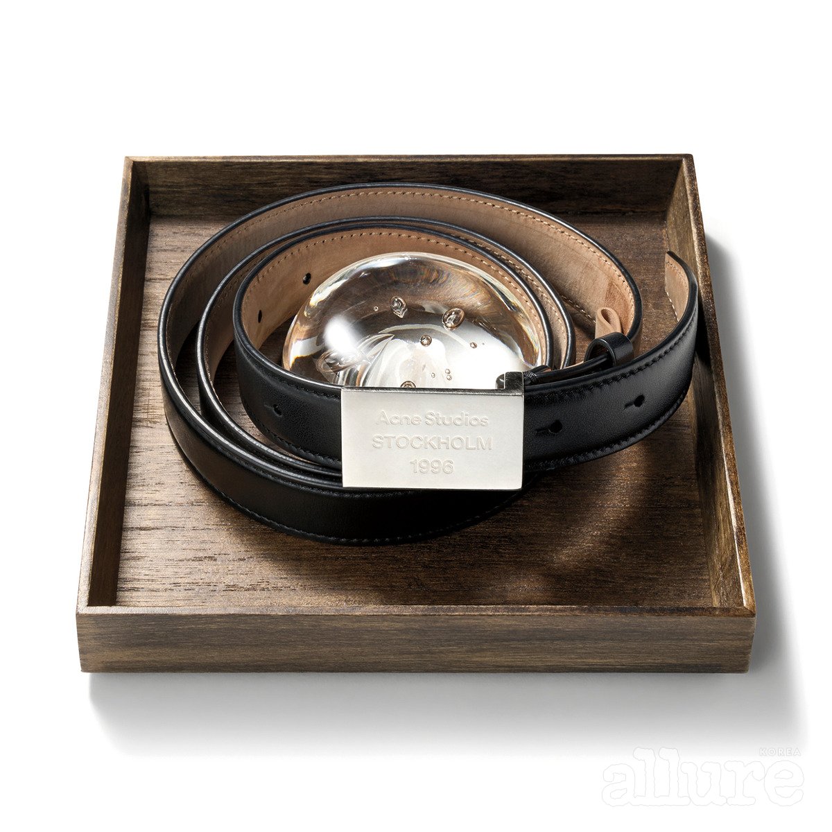 버클에 로고를 각인한 카프스킨 레더 벨트는 54만원 아크네 스튜디오(Acne Studios).