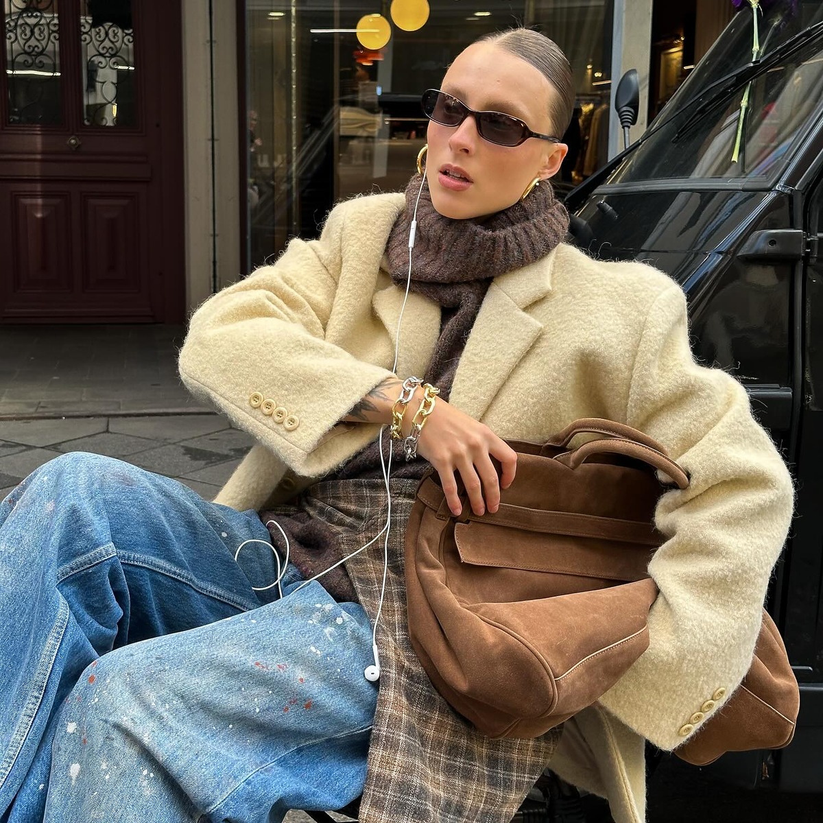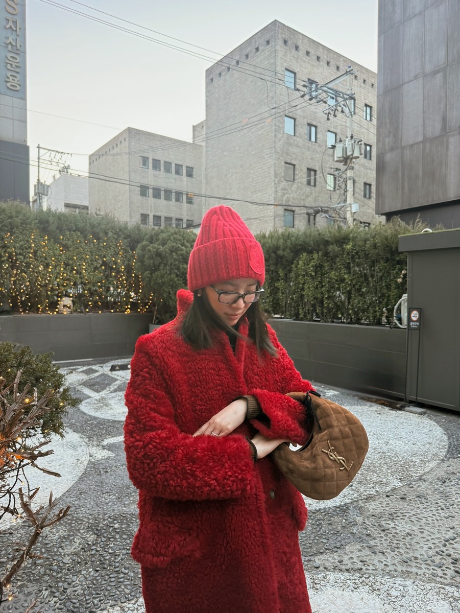 부피감 있는 겨울 아우터에는 오히려 작은 백이 더 효과적이에요. 아이린처럼 강렬한 올레드 룩에 차분한 컬러의 미니 스웨이드 백을 매치하면 룩의 균형이 살아나고, 린다처럼 채도가 높은 미니백은 무채색 착장에 확실한 포인트가 됩니다. 부드러운 스웨이드 질감 덕분에 크기가 작아도 존재감이 확실하고, 포근함까지 자연스럽게 살아나죠.