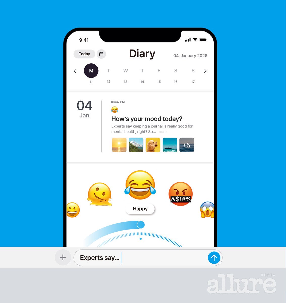 물론 디지털 세상에서도 은밀한 일기 쓰기를 이어갈 수 있다. 스마트폰 일기 앱이 대표적이다. 요즘 일기 앱은 좀 더 감성적으로 접근한다. 사진 첨부는 기본, 귀여운 기분 스티커나 날씨 스티커 등을 활용해 디지털 환경에서도 ‘다꾸’하는 재미를 느낄 수 있게 한다. 미래의 자신에게 메시지를 보내는 ‘타입캡슐’ 기능을 제공하거나, ‘데일리오’처럼 매일 달라지는 기분을 기록하는 ‘무드 트래커’ 기능에 중점을 두는 서비스도 있다. ‘러닝 일기’나 ‘식단 일기’ 등에 집중하는 사람도 있는데, 이는 매일의 루틴을 점검하고 더 나은 방향으로 안내하는 기능을 한다.