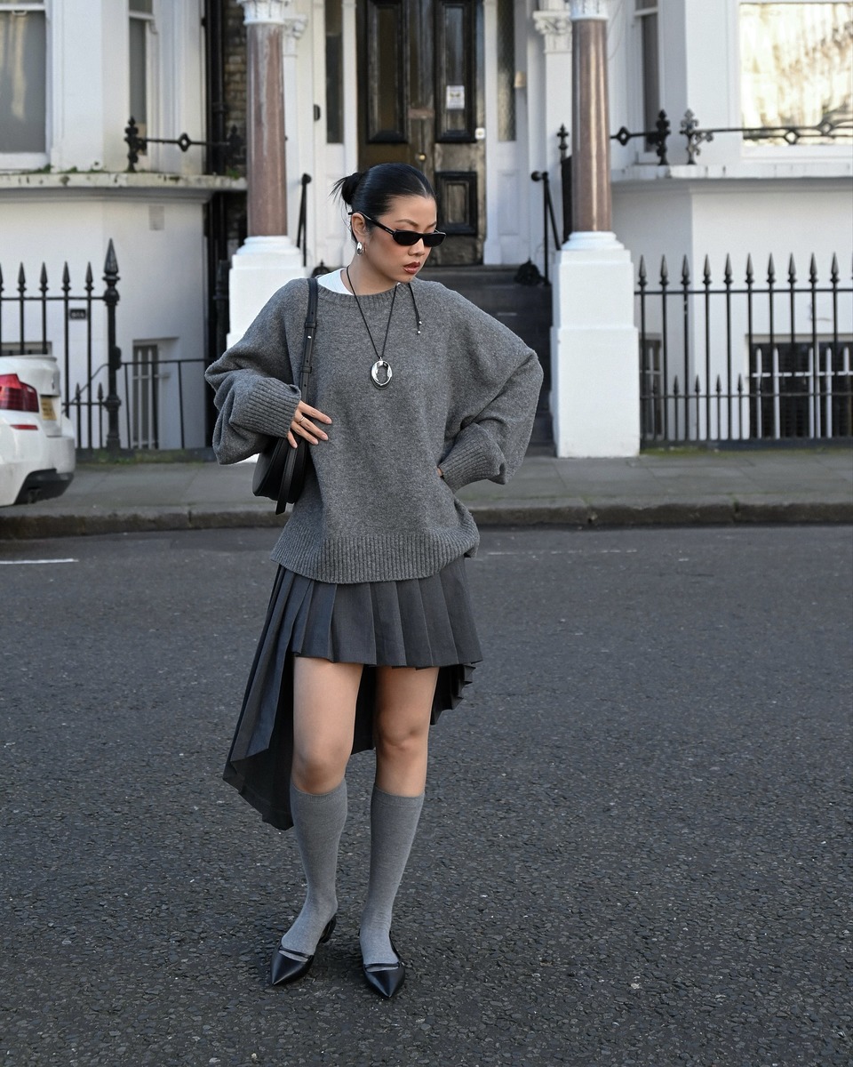 겨울 아우터와 니트 속에서 얇은 체인 목걸이는 쉽게 묻히기 마련이에요. 그러나, 크기가 큰 실버 팬던트 목걸이를 선택하면 상황이 달라집니다. 그레이 니트 위에 볼드한 팬던트를 더하는 것만으로도 룩의 완성도가 단번에 살아나죠. 팬던트와 같은 톤의 귀걸이를 함께 매치하면 통일감을 더할 수 있어요. 실버 주얼리는 컬러를 가리지 않아 겨울 아우터와 두루 잘 어울리는 것도 장점입니다.