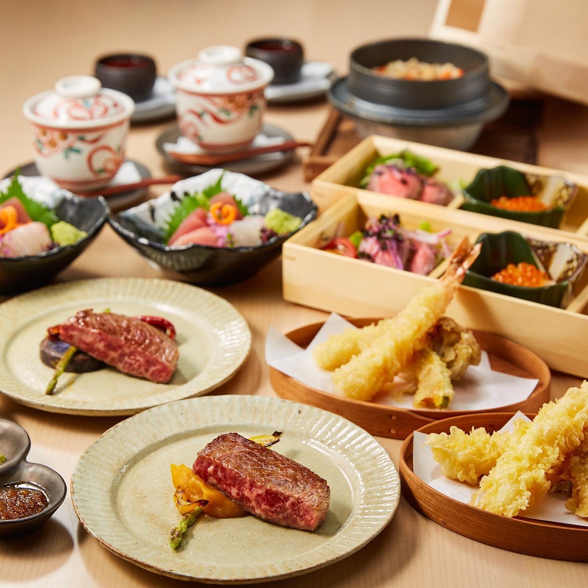 가이세키 요리는 오이타 와규, 유후인의 흰 쌀 등 규슈 지역에서 나는 식재료를 중심으로 준비됩니다. 12월부터는 도미, 게 샤브샤브 등 제철 해산물로 구성된 메뉴를 제공한다고 해요. 짧고 굵게 료칸을 즐기고 싶다면 후쿠오카 규슈로!