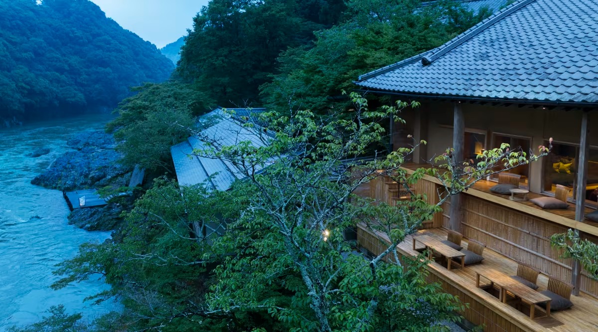 먼저, 호시노야 교토는 과거 교토 귀족들이 자주 찾던 휴양지인 ‘아라시야마’에 위치해 있는데요, 큰 강과 대나무 숲이 펼쳐져 있어 지금도 많은 관광객들의 사랑을 받고 있습니다. 이곳의 자연을 고스란히 느낄 수 있도록 체크인을 하면 호텔에서 준비한 배를 타고 좀 더 깊숙이 들어가 건물에 도착하는 독특한 경험을 제공합니다.