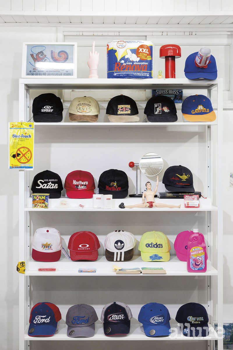 가장 중요한 건 ‘직감’이다. 브랜드와 시즌, 명성 같은 건 차치하고 가장 먼저 눈에 들어와야 한다. 라벨 없는 모자가 명품보다 더 매력적인 순간도 있다. 그리고 많게는 3000피스까지 가져올 때가 있는데, 모두 직접 써보고 착용감과 컨디션을 체크한 후 판매 기준에 적합한 제품만 고른다.