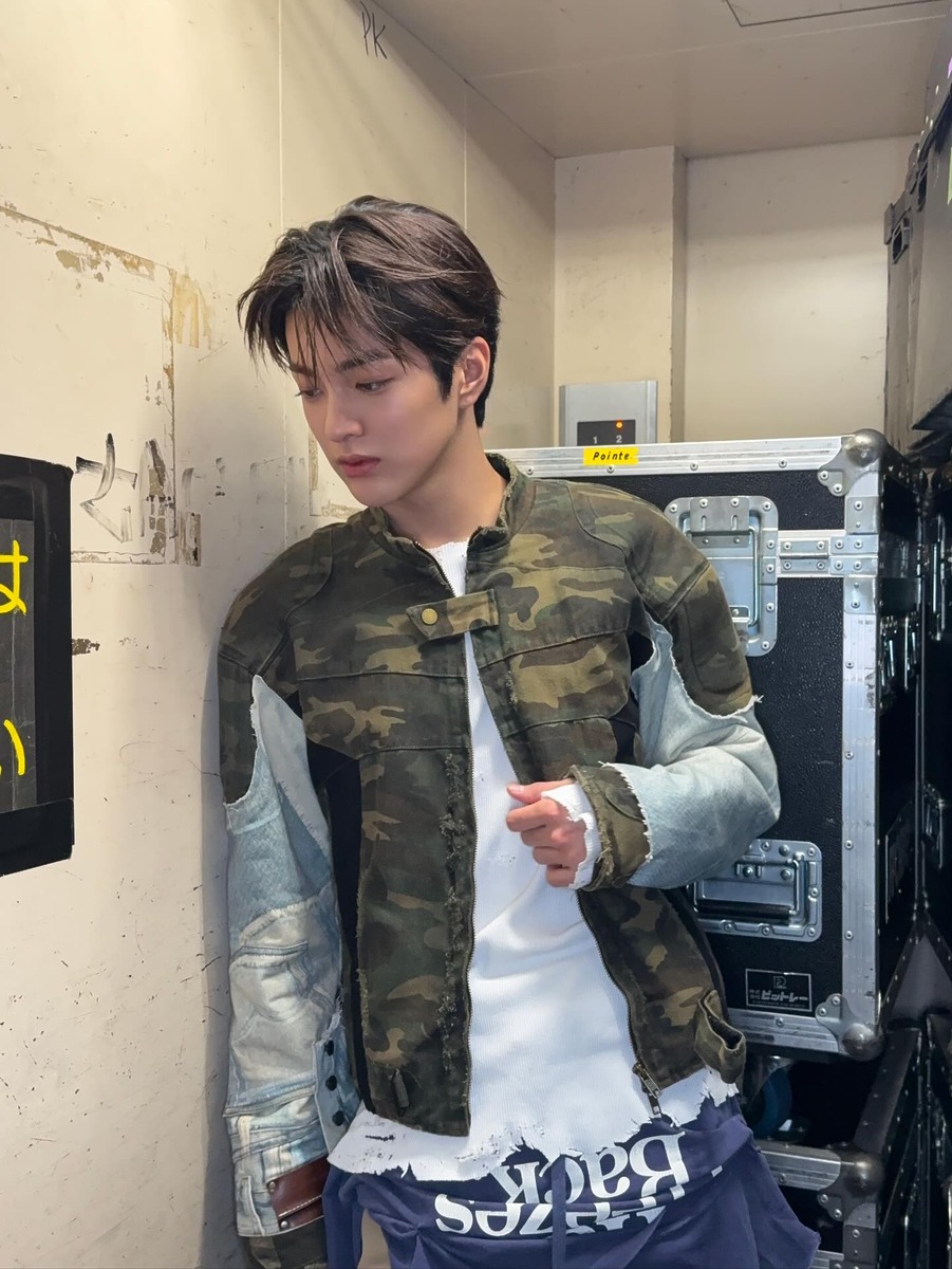 카모플라주 패턴이 들어간 아우터는 하나만 걸쳐도 룩에 힘을 실어주는 스타일링 치트키죠. 코르티스 건호는 카모플라주와 데님이 섞인 과감한 재킷을 선택했는데요. 재킷에 시선이 갈 수 있도록 이너와 하의에는 힘을 뺀 모습입니다. 이렇게 베이직한 아이템과 함께 균형을 잡아주면 패턴의 존재감은 살리면서도 데일리 룩으로 충분히 활용할 수 있죠.