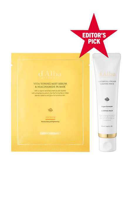 10 달바 워터풀 비건 슬리핑팩, 비타 토닝 미스트 세럼 & 나이아신아마이드 5% 마스크