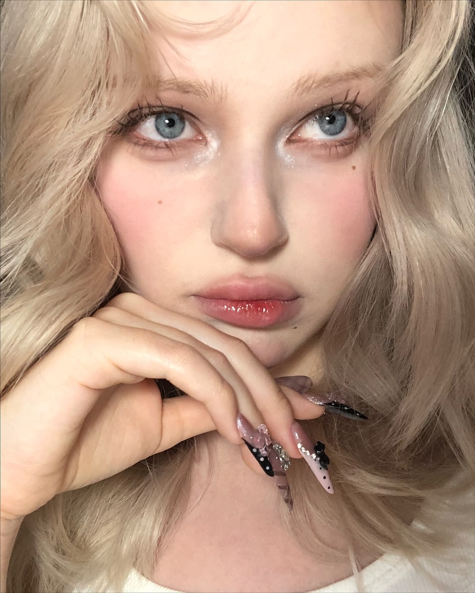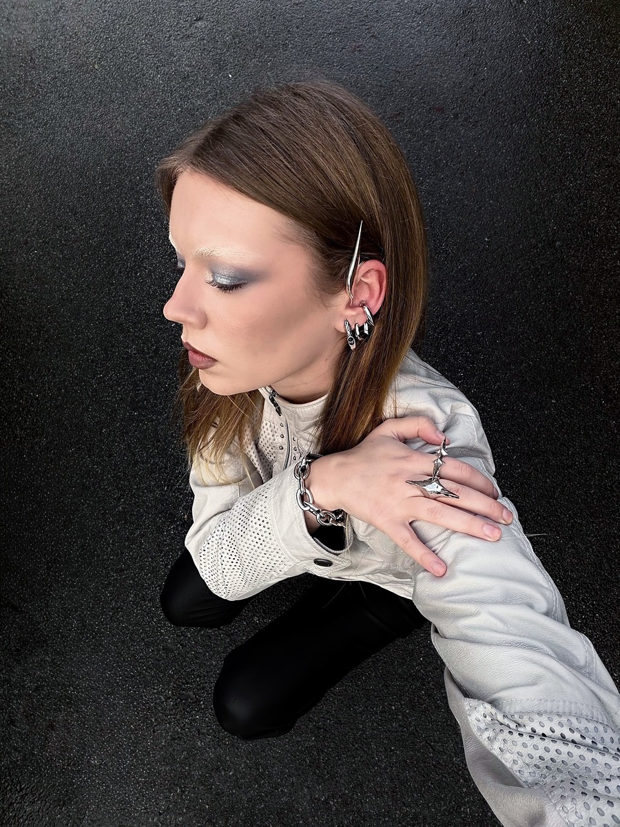 쇠맛의 원조라 부를 수 있는 에스파 닝닝의 콘셉트 포토와 뷰티 크리에이터로 활동 중인 매디의 인스타그램 피드, 그리고 라반과 체리엑스엑스 등 뷰티 브랜드의 화보에서 포착된 공통점은? 바로 서늘한 크롬의 반짝임을 얼굴에 얹어주었다는 점입니다. 하이라이터 대유행 시대를 지나면서 얼굴에 진줏빛 광채를 얹는데 망설임이 없어진 여성들은 보다 과감하고 미래적인 느낌을 주는 메탈릭 메이크업에 주목하기 시작했어요.