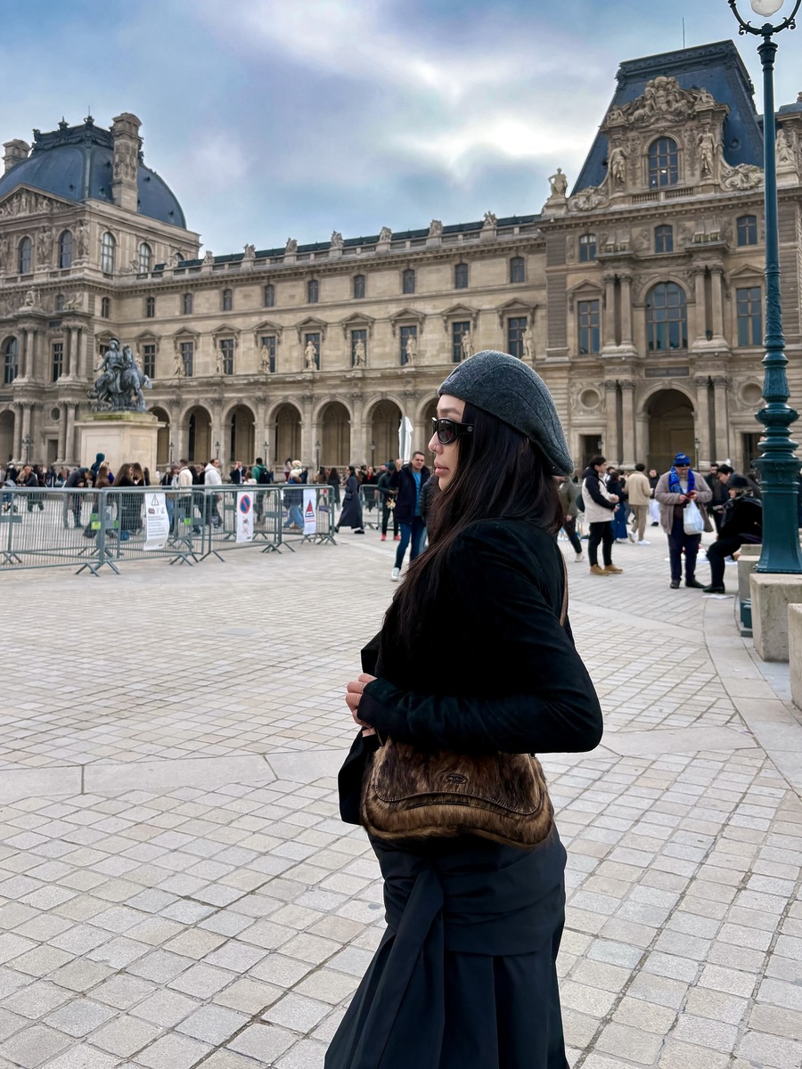 베레모의 소재에 변주를 주는 것도 좋은 방법입니다. 하연수는 그레이 롱 코트에 데님 베레모를 더해 겨울 데일리룩에 사랑스러운 포인트를 줬는데요. 베레모에 흔히 쓰이는 펠트 소재 대신 밝은 데님 소재를 선택해 한층 캐주얼한 인상을 줍니다.