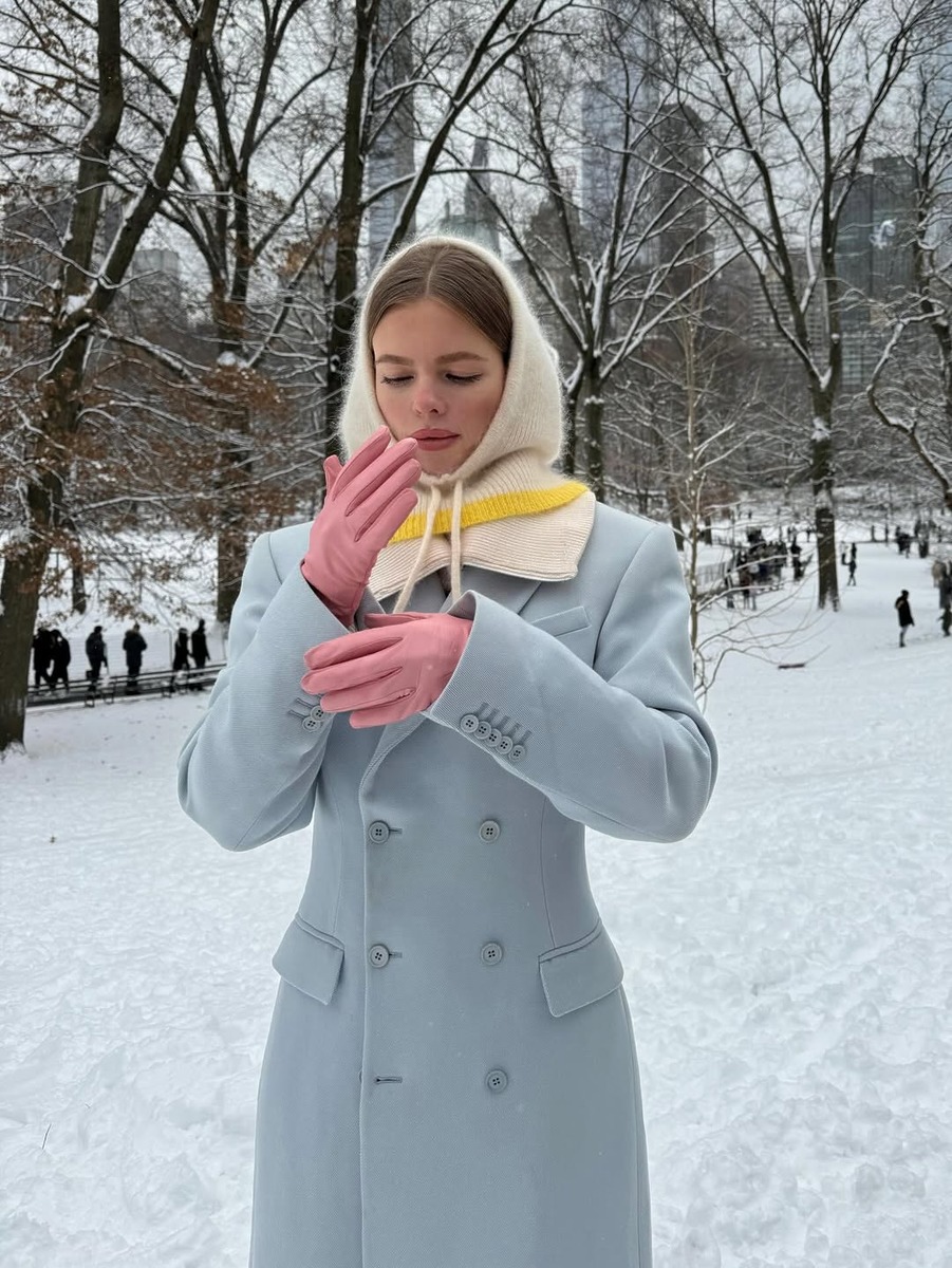 그레이, 네이비, 브라운 같은 겨울 무채색과 파스텔 컬러를 섞어 칙칙한 겨울 안색을 밝혀보세요. 밀키 파스텔 컬러가 ‘포인트’ 역할을 하여 얼굴 주변을 환하게 밝혀주면서도, 전체적인 룩은 안정감이 유지될 수 있어요.