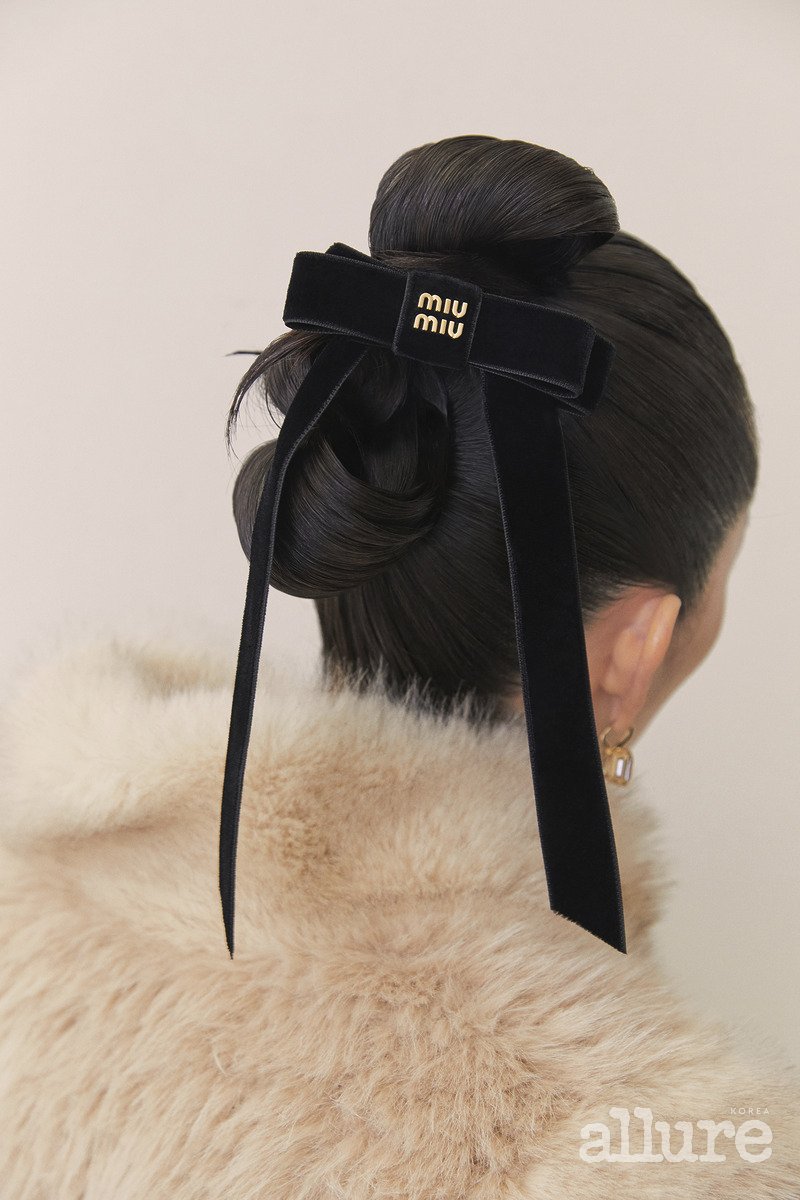 퍼 재킷처럼 몸이 부해 보이는 두꺼운 아우터를 입을 때는 머리의 부피감을 줄여 위아래 밸런스를 맞추는 것이 좋다. 모발에 굵은 웨이브를 넣는 등 글램하게 스타일링하면 전체 실루엣이 커지면서 실제 나이보다 성숙해 보이기 쉬우니 주의할 것. 이럴 때는 위로 높게 올려 묶은 번 헤어를 시도하자. 눈꼬리도 같이 올라가며 자연스러운 리프팅 효과도 얻을 수 있으니! 정면에서 바라봤을 때, 묶은 머리의 번 부분이 살짝만 보이게 연출하는 것이 포인트다. 두상만 적나라하게 드러나면 오히려 부담스러워 보일 수 있기 때문이다. 더불어 뒷머리의 스타일도 놓치고 싶지 않다면 리본 모양의 번을 만들고 헤어 핀을 꽂아 발랄함을 더해보자.