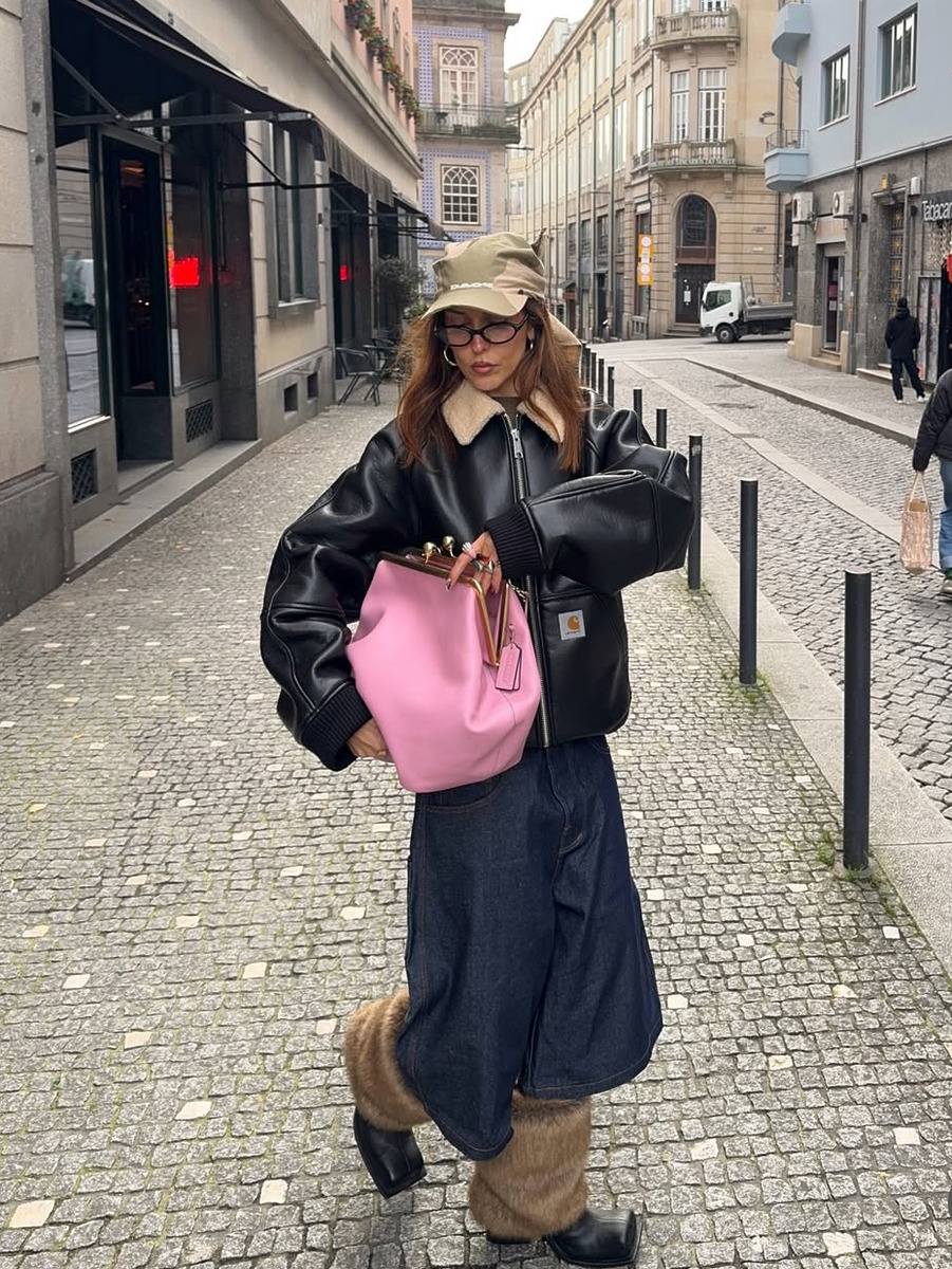 데님에 가장 잘 어울리는 소재 중 하나인 레더! 한겨울에도 포기할 수 없다면? 퍼 트리밍 아이템들을 매치해보는 것은 어떨까요? 실제로 보온 효과는 물론 시각적인 보온 효과까지 노릴 수 있으니 말이에요.