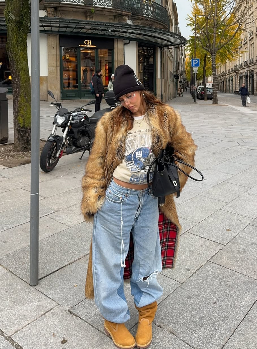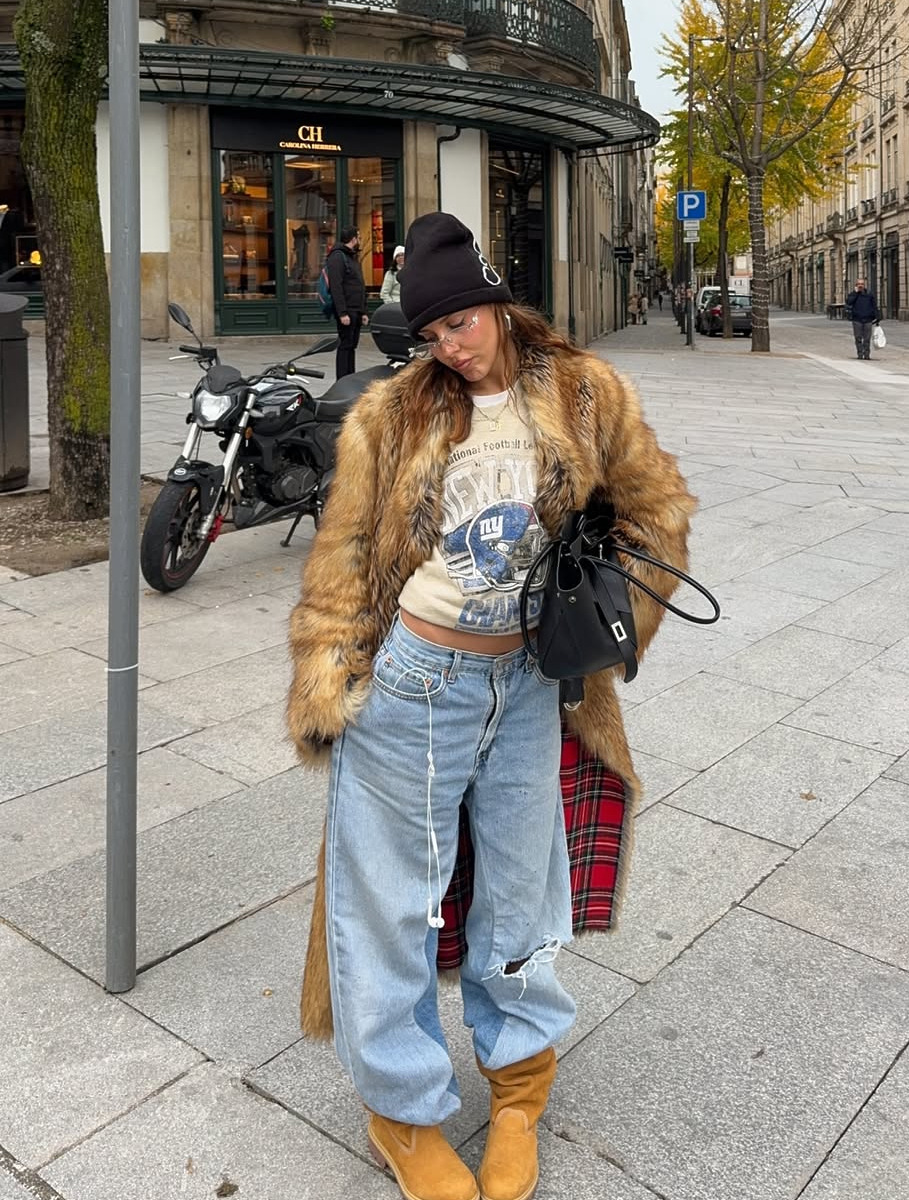 데님으로 완성하는 캐주얼한 스트리트 룩을 따뜻하고 힙하게 연출하고 싶다면 단연 페이크 퍼 코트를 추천합니다. 길이가 길수록, 부피가 클수록 스트릿한 느낌은 더욱 강해지죠. 테가 없는 안경, 비니, 툭 삐져나온 유선 이어폰 등. 스타일의 한 끗 차이를 결정하는 센스 넘치는 요소들도 눈여겨보세요!