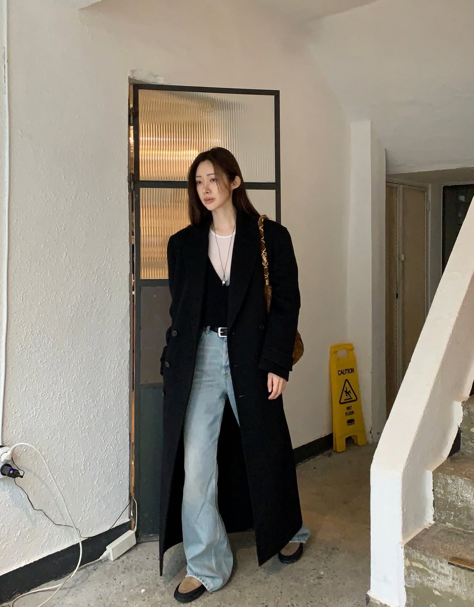 블랙과 연청 데님의 조합은 언제나 옳습니다. 겨울에는 핏이 슬림한 맥시 코트에 매치해보세요. 이너 또한 블랙&화이트로 통일하고 심플한 벨트를 더한 후, 자연스럽게 떨어지는 부츠컷 데님을 입으면 오케이. 이 때, 액세서리는 비슷한 컬러 톤으로 통일하면 룩의 밸런스를 맞출 수 있죠.