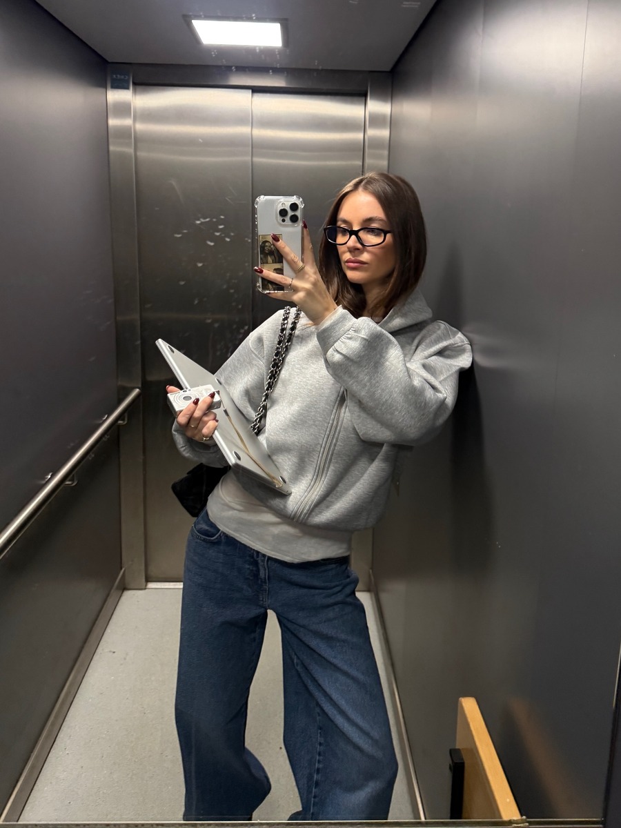 데님 팬츠로도 충분히 출근룩을 완성할 수 있어요. 넉넉한 실루엣의 스트레이트 데님 팬츠에 그레이 후드 톱이나 재킷을 매치해 보세요. 이때 너무 캐주얼해 보이지 않도록 가방과 슈즈는 레더 소재로 통일해 균형을 잡는 것이 중요합니다. 캐주얼한 착장에 포멀한 액세서리를 더하는 것만으로도 데일리 룩이 자연스럽게 오피스룩으로 바뀔 수 있죠.