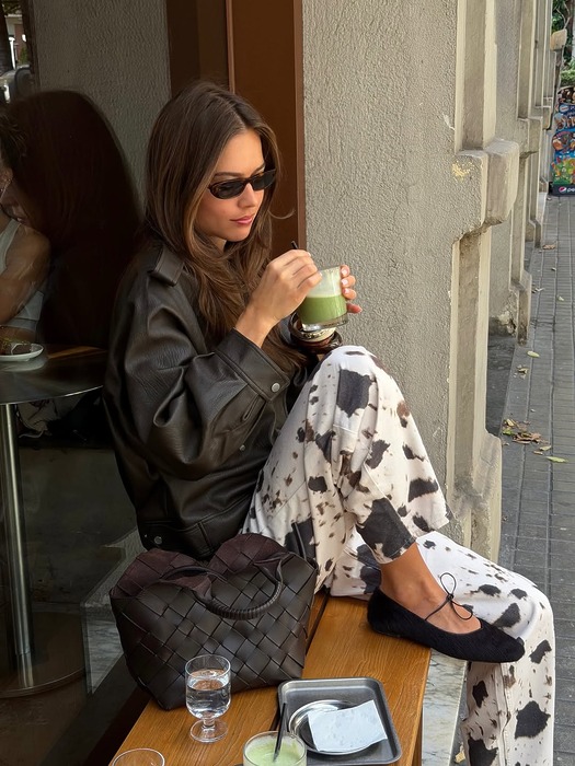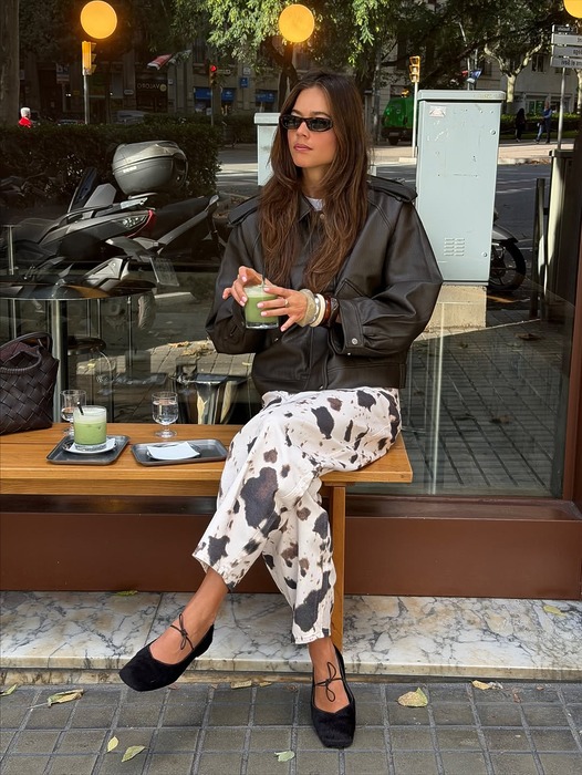 레더 블루종은 색다른 하의를 매치해 즐겨보세요. 앞서 소개한 미디 스커트도 좋고, 패턴이 화려한 팬츠도 좋아요. 얼룩 포인트가 있는 화이트 팬츠나 애니멀 프린트가 있는 바지에 루스한 레더 블루종을 입는다면 개성을 확실히 드러낼 수 있을 거예요. 블루종 속에 셔츠를 받쳐 입는 것도 색다른 방법입니다. 티셔츠나 니트 위에만 입었다면 포멀한 느낌을 내기 어려웠겠지만 셔츠를 입고 레더 블루종을 입는다면 전혀 다른 느낌이죠.