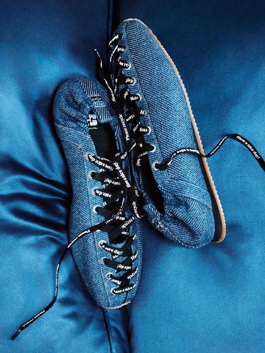 액세서리들 역시 데님을 입었습니다. 3.1 필립림은 반구 형태의 볼드한 장식이 더해진 데님 백과 슈즈, 그리고 브랜드의 대표 디자인인 ‘루나백’의 데님 버전을 선보이며 데님을 향한 진심을 보여줬어요. 가니는 발레코어에 데님을 더해 토슈즈를 빼닮은 서정적인 스니커즈를 제안했습니다. 매번 바지로만 접했던 데님을 올봄에는 좀 더 다양한 아이템으로 만나보면 어떨까요?
