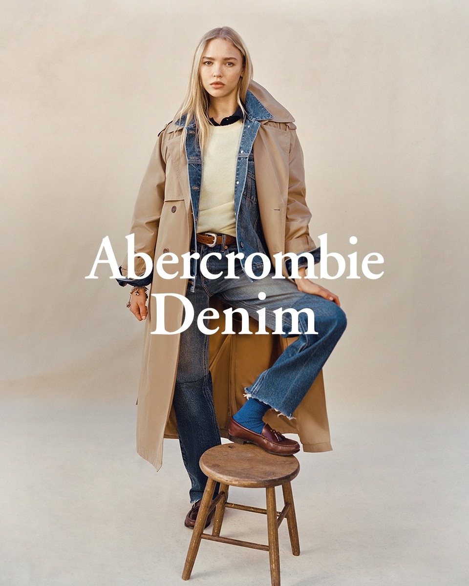데님을 소재로 만든 재킷 중 가장 익숙한 ‘트러커 재킷’ 스타일부터 2000년대 초반의 향수가 느껴지는 디자인까지, 올해 데님 아우터 및 상의는 그 스펙트럼을 좀 더 넓혀갈 예정입니다. 에밀리는 아메리칸 캐주얼 무드가 가득한 데님 셔츠를 부츠컷 진, 그리고 지브라 패턴의 슬링백과 매치해 섹시한 매력을 강조했어요. 아베크롬비 역시 정석적인 청재킷과 밑단에 자연스러운 디스트로이드 디테일을 넣은 팬츠에 태슬 로퍼, 트렌치코트를 더해 데님을 보다 포멀한 느낌으로 재해석했습니다.