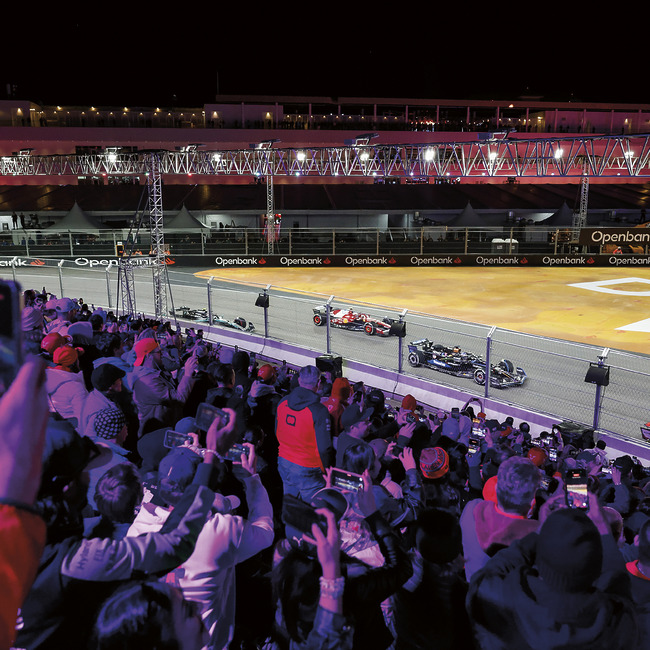 영화 <F1 더 무비>에서 브래드 피트가 심어준 판타지가 나를 예정에 없던 도시로 이끌었다. 라스베이거스 그랑프리는 ‘야간 레이스’라는 말로는 부족하다. 라스베이거스의 밤은 늘 과장되어 있다고 생각했는데, F1이 펼쳐지는 주말의 네온은 온전한 현실이었다. 스트립을 가로지르는 코스 위로 엔진의 굉음이 번지고, 호텔 외벽의 빛이 트랙의 일부처럼 반사된다. 도시 전체가 하나의 레이스 트랙이 된 광경은 그야말로 장관(물론 그로 인한 교통 혼잡은 불가피했지만)을 이뤘다. 서킷과 도시의 경계가 사라졌고, 관람석에서 올려다본 스트립은 거대한 무대 장치와도 같았다.