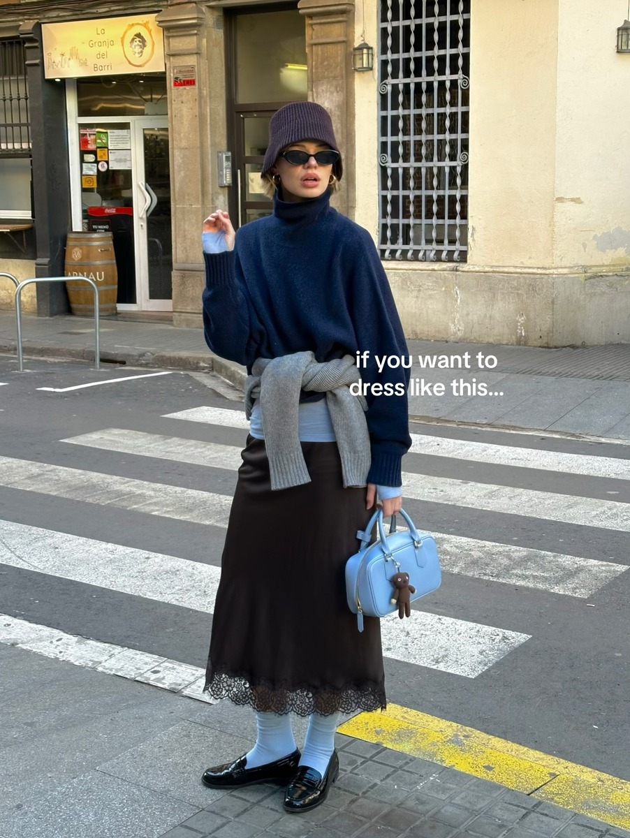 비교적 쉽게 시도해 볼 수 있는 방법은 레이스가 트리밍된 슬리브리스를 활용하는 것입니다. 네크라인이나 밑단에 레이스가 더해진 슬리브리스를 입고, 그 위에 상의를 덧입어 줍니다. 이때 레이스가 슬쩍 드러나게 연출하면 끝! 과거 2000년대 초중반에 유행했던 스타일링으로 영화 ‘트와일라잇’ 시리즈의 주인공, 벨라 스완이 잔잔한 레이스가 들어간 톱을 캐주얼한 상의와 함께 입고 등장해 그녀가 떠오른다는 의견도 많습니다. 잉화처럼 프린트가 화려한 슬리브리스를 더욱 강조하고 싶다면 뷔스티에를 걸치듯 상의 위에 걸치는 것도 좋겠죠?