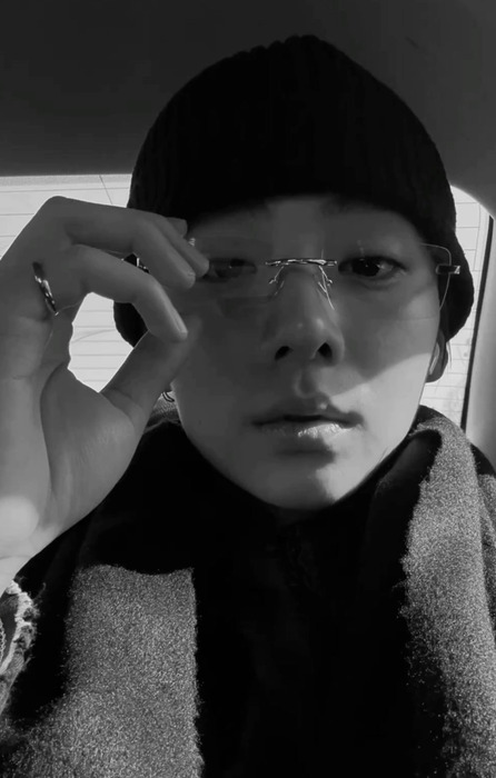 이쯤 되면 그의 안경 컬렉션도 궁금해지는데요. 댄디하게 차려입는 코트 룩에는 무테안경을, 집 앞에 나가는 듯 편안한 후드 집업에는 검정 뿔테, 가벼운 티셔츠 한장에는 브라운 뿔테안경을 착용해 룩마다 다른 느낌으로 연출하죠.